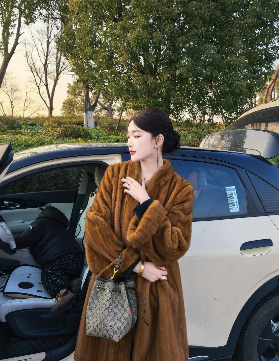 GUCCI Ophidia bucket Bag, single-shoulder handbag, small size for women, brown