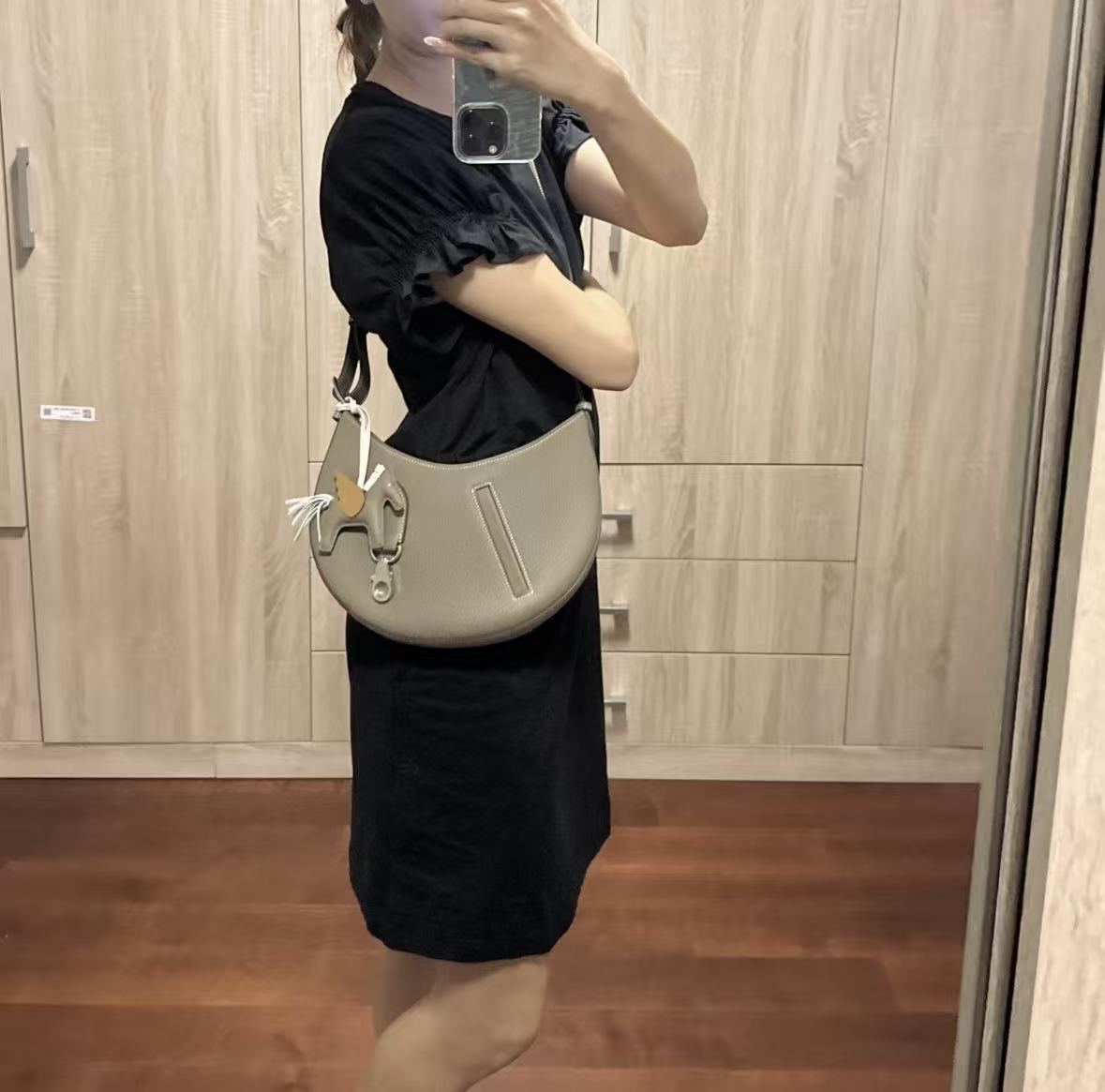 HERMES Arcon silver metal hardware moon bag, hand and shoulder bag for women, 18 Etoupe, elephant grey