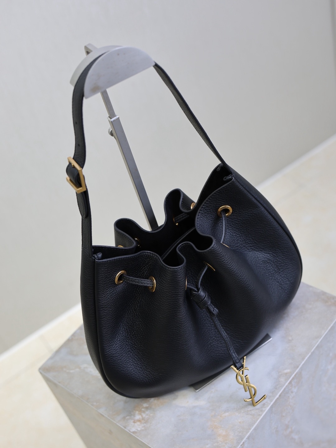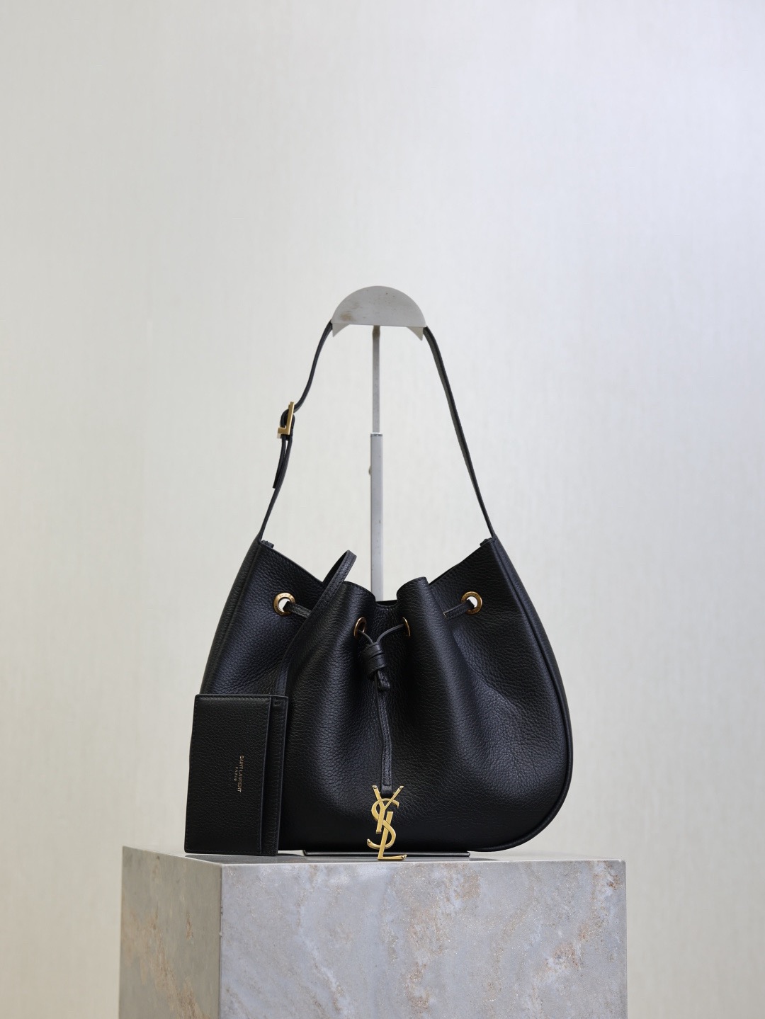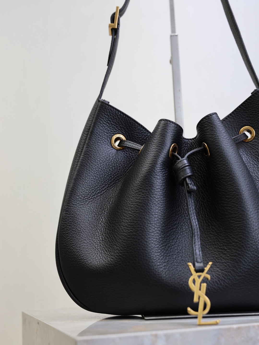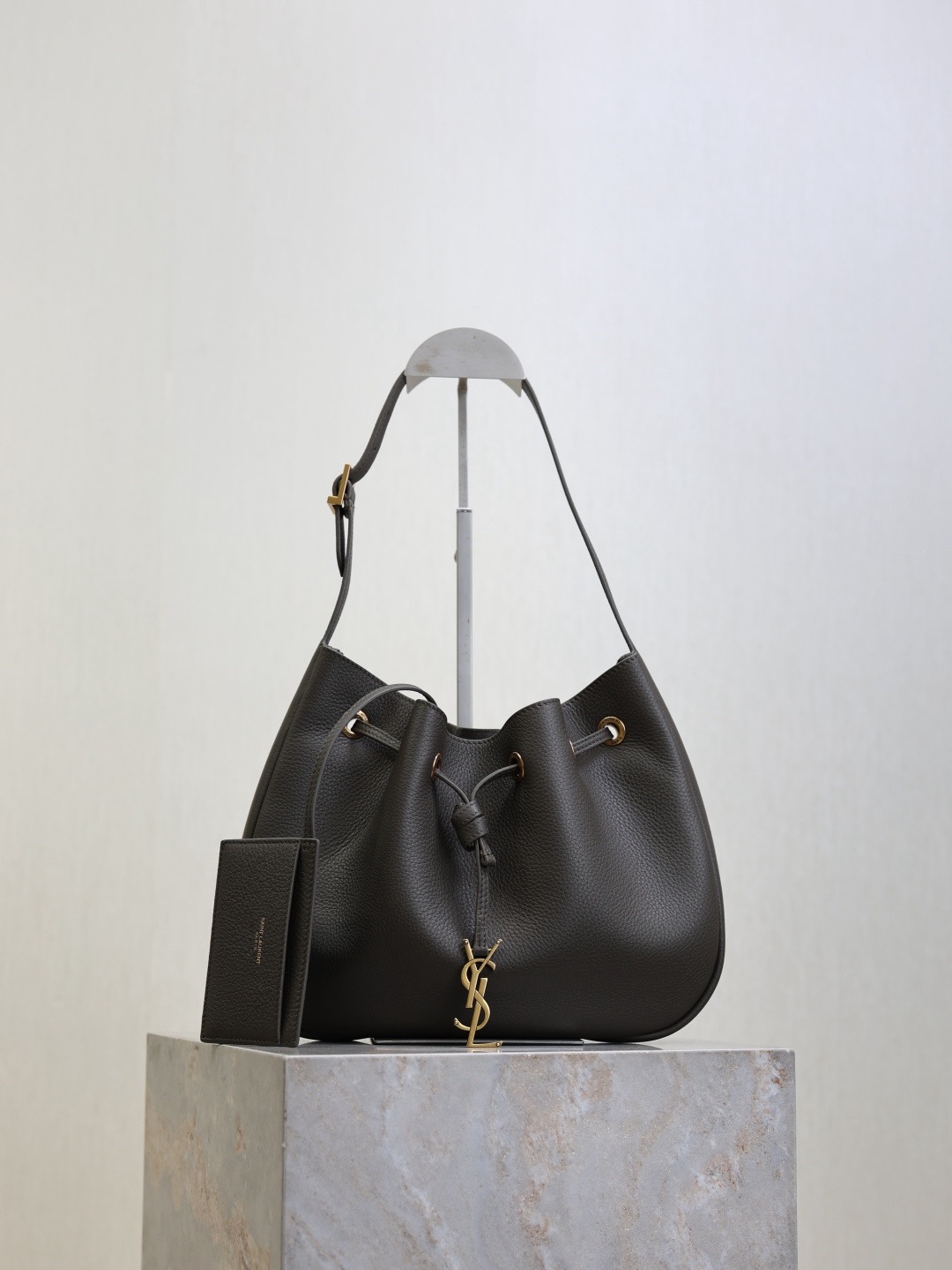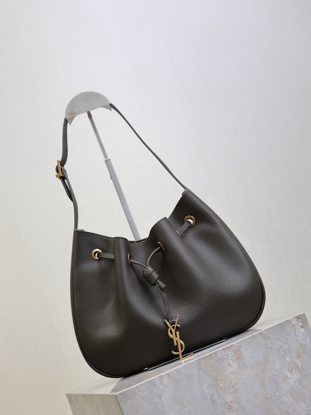 SAINT LAURENT golden Logo adjustable shoulder strap grated leather single-shoulder bag handbag