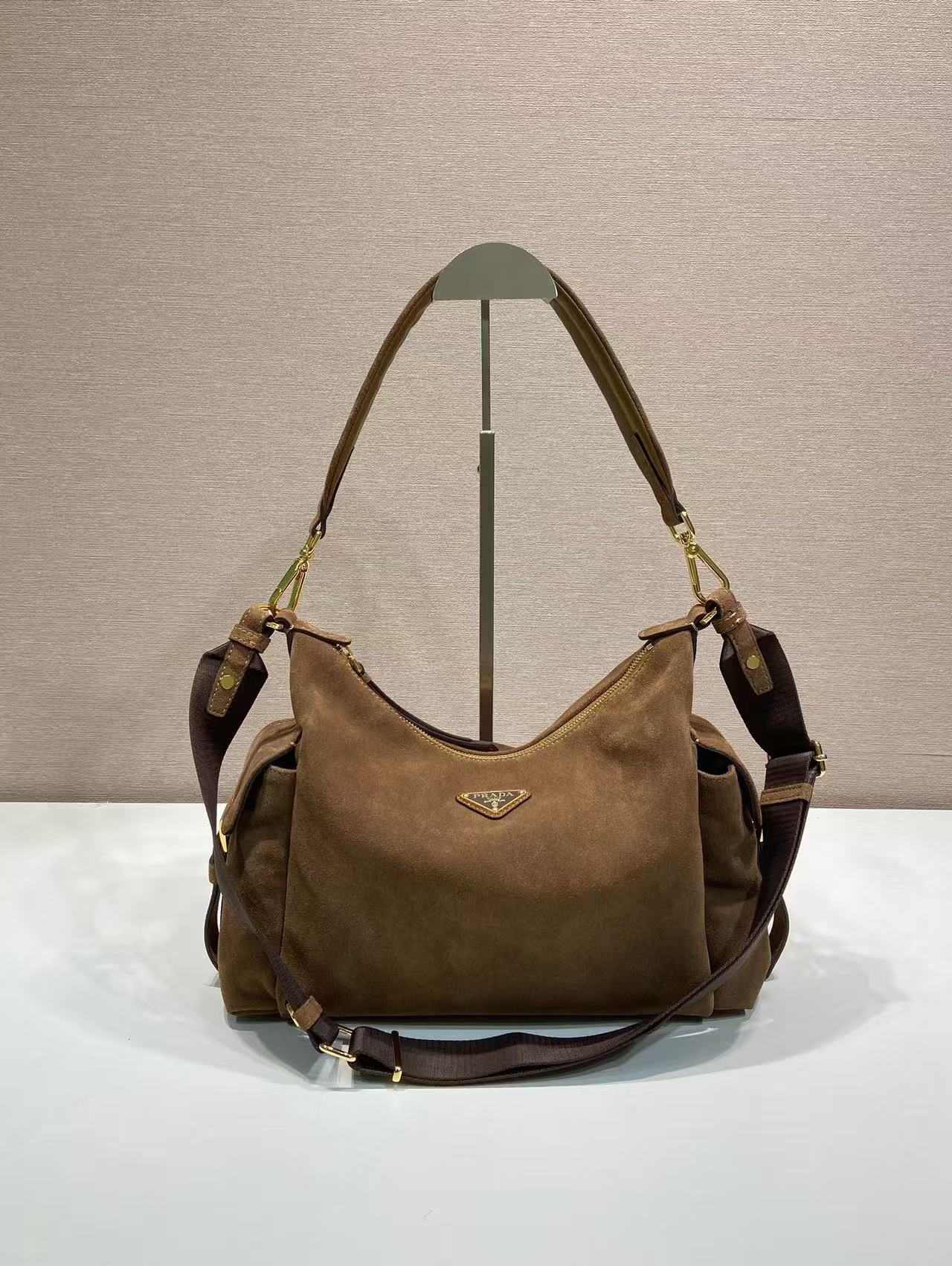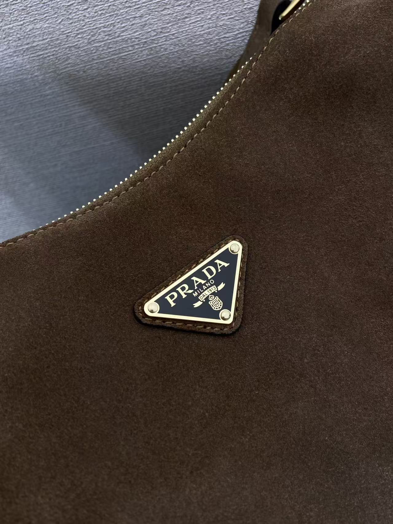 PRADA Explore enamel metal triangular logo zipper open shoulder bag for women, large size