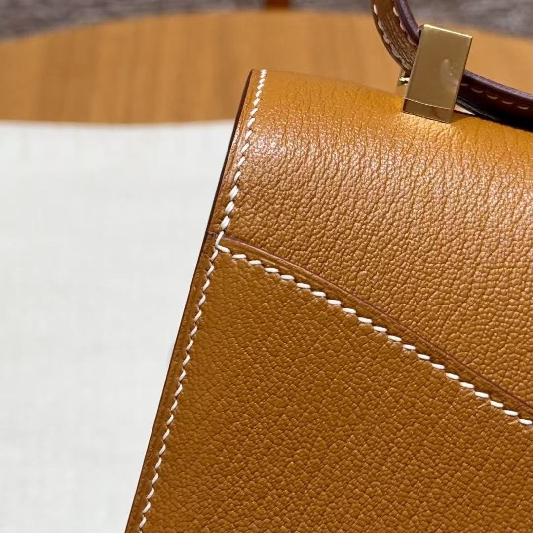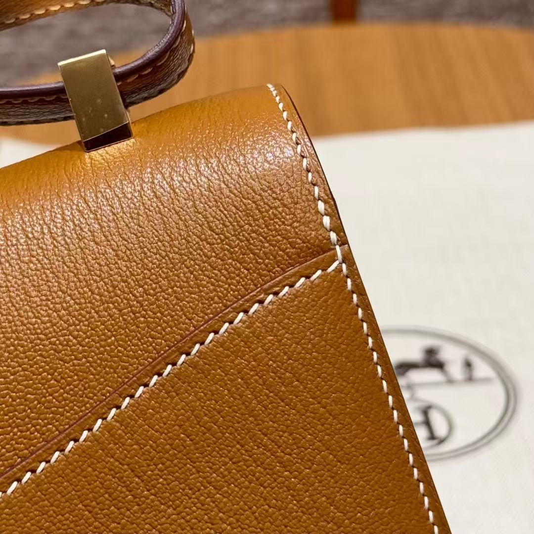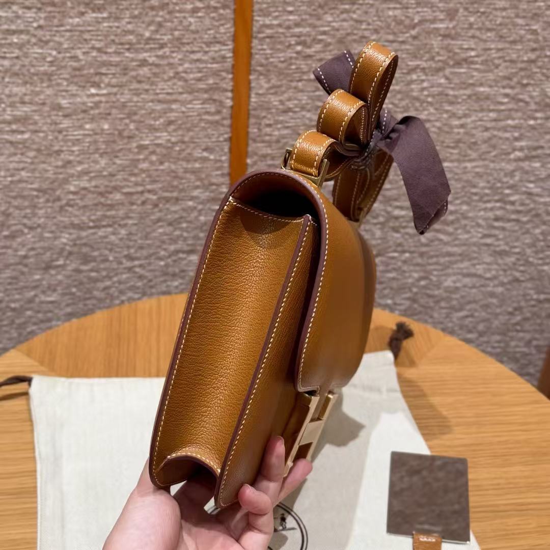 HERMES Constance 19 Gold buckle crossbody single-shoulder bag 19 Women\'s Edition 21 Nature L-Sable Light Tea color