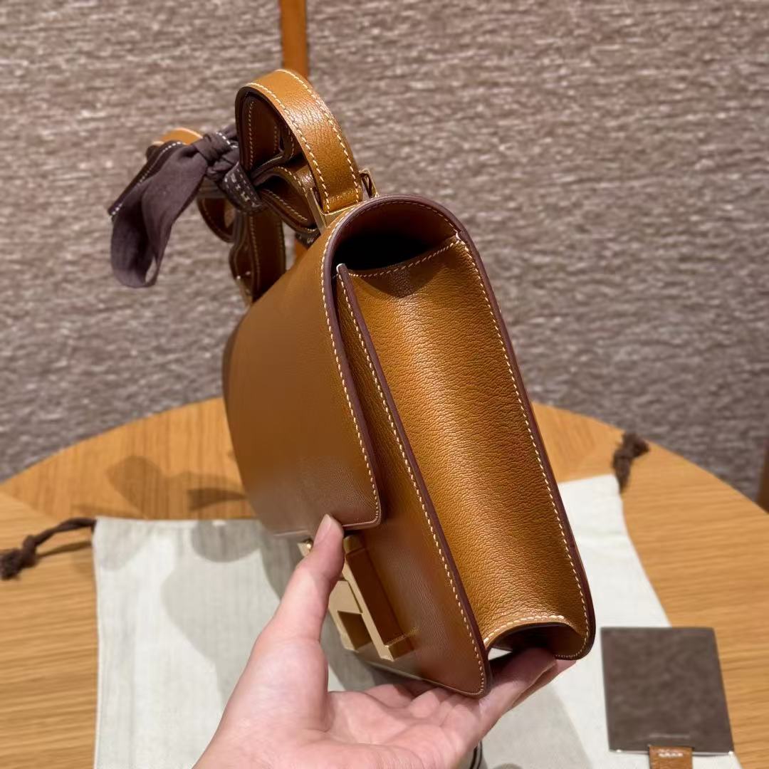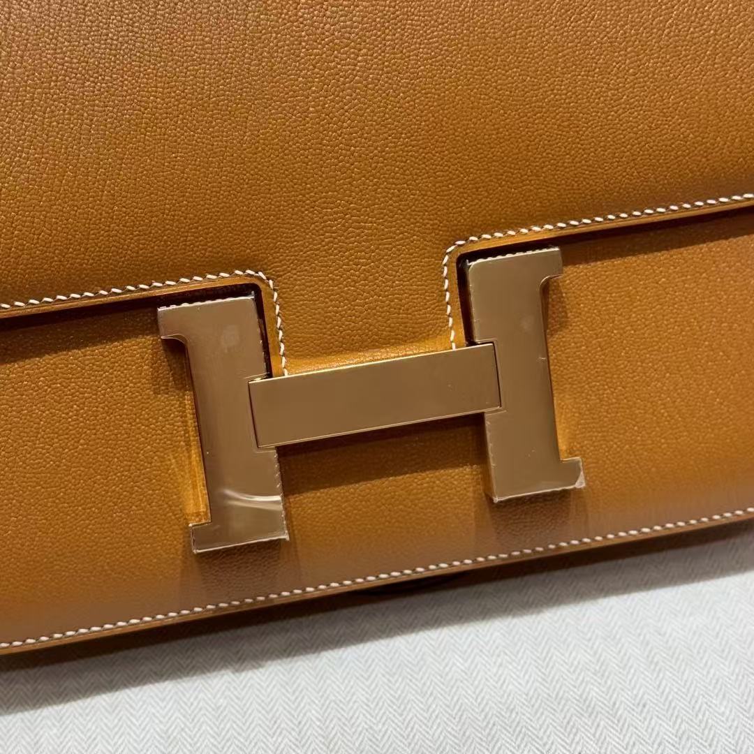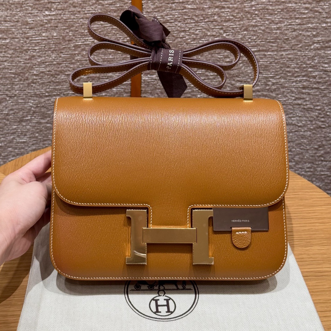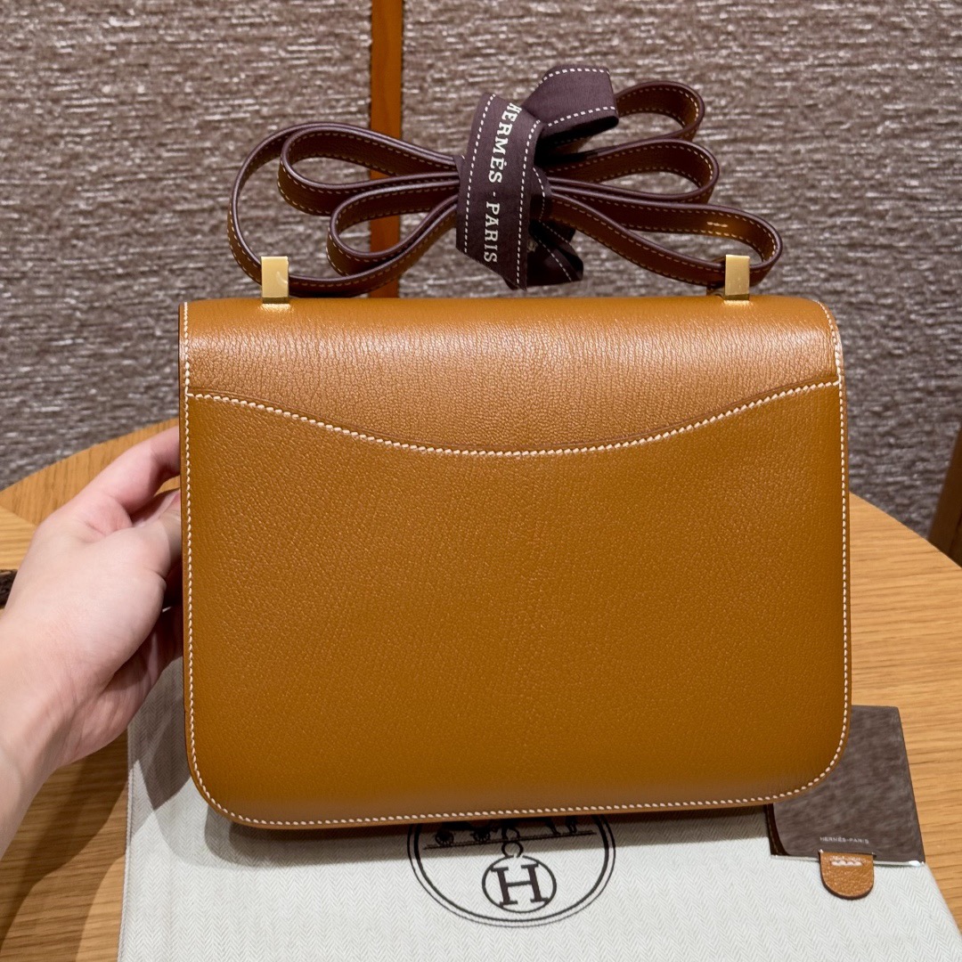 HERMES Constance 19 Gold buckle crossbody single-shoulder bag 19 Women\'s Edition 21 Nature L-Sable Light Tea color