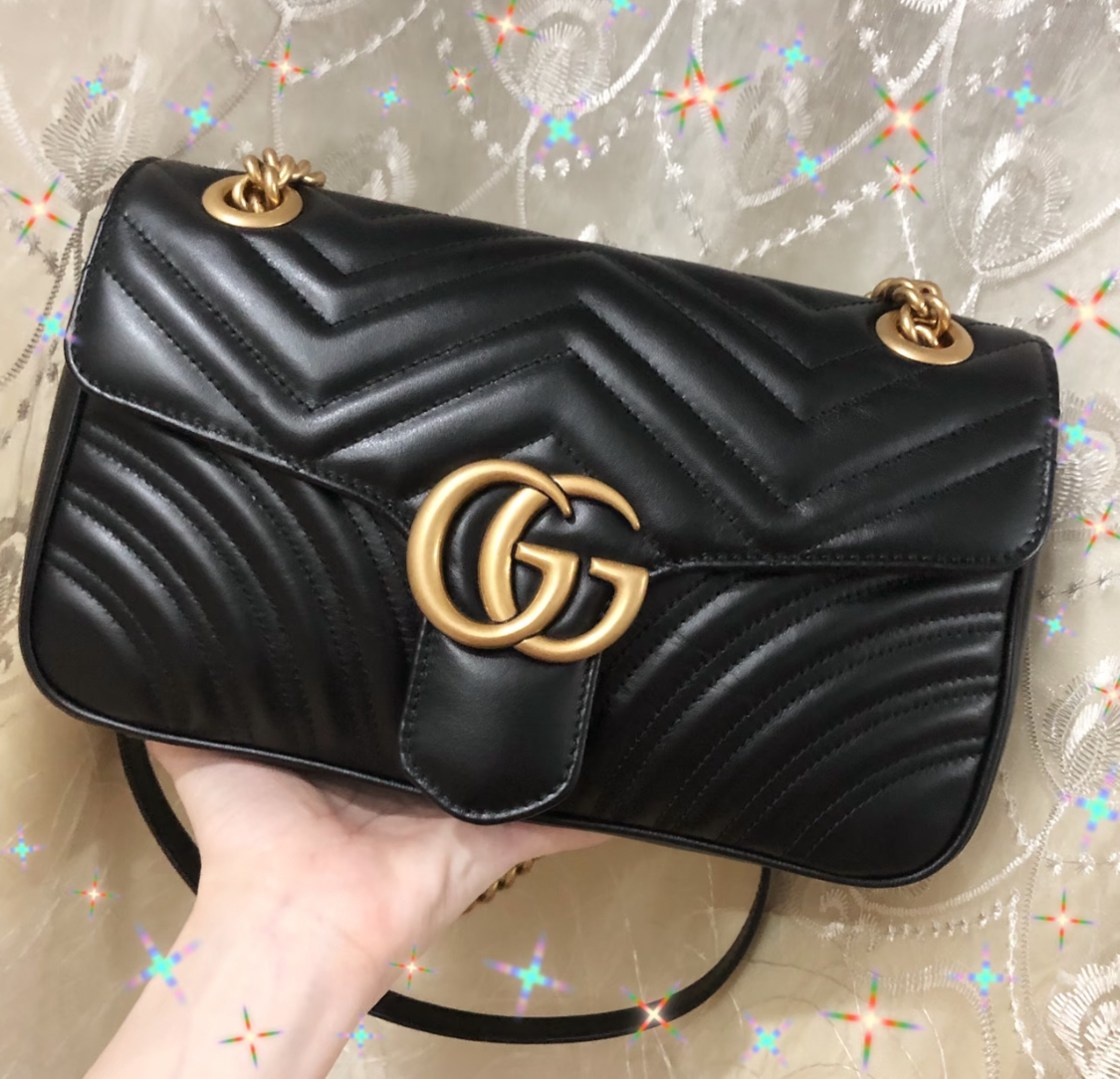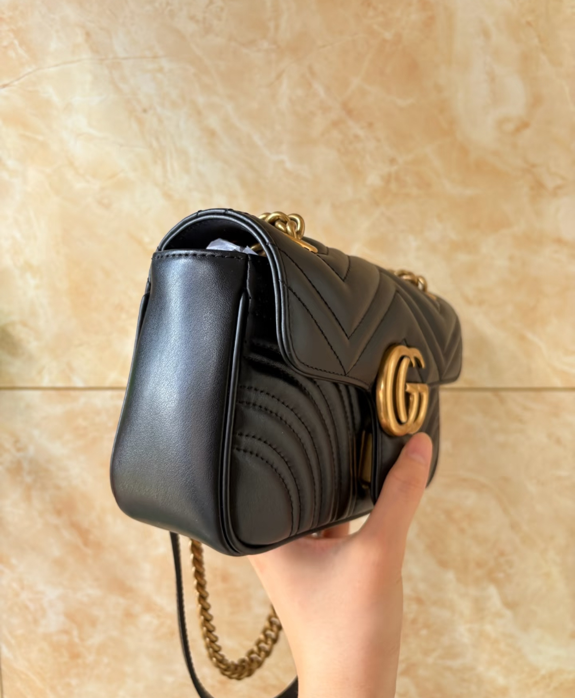 GUCCI GG Marmont gold Logo distressed quilted chain bag crossbody single-shoulder bag, small size for women, black