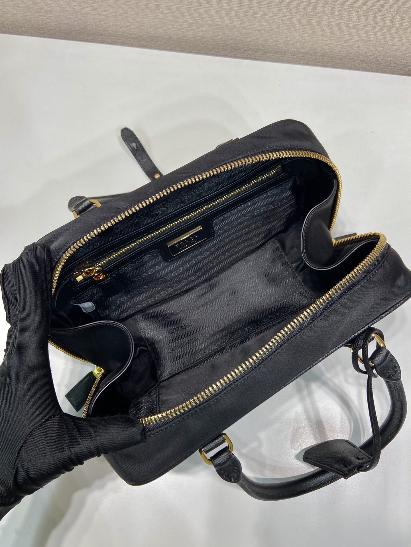 PRADA Explore enamel metal triangular logo zipper open shoulder bag for women, large size