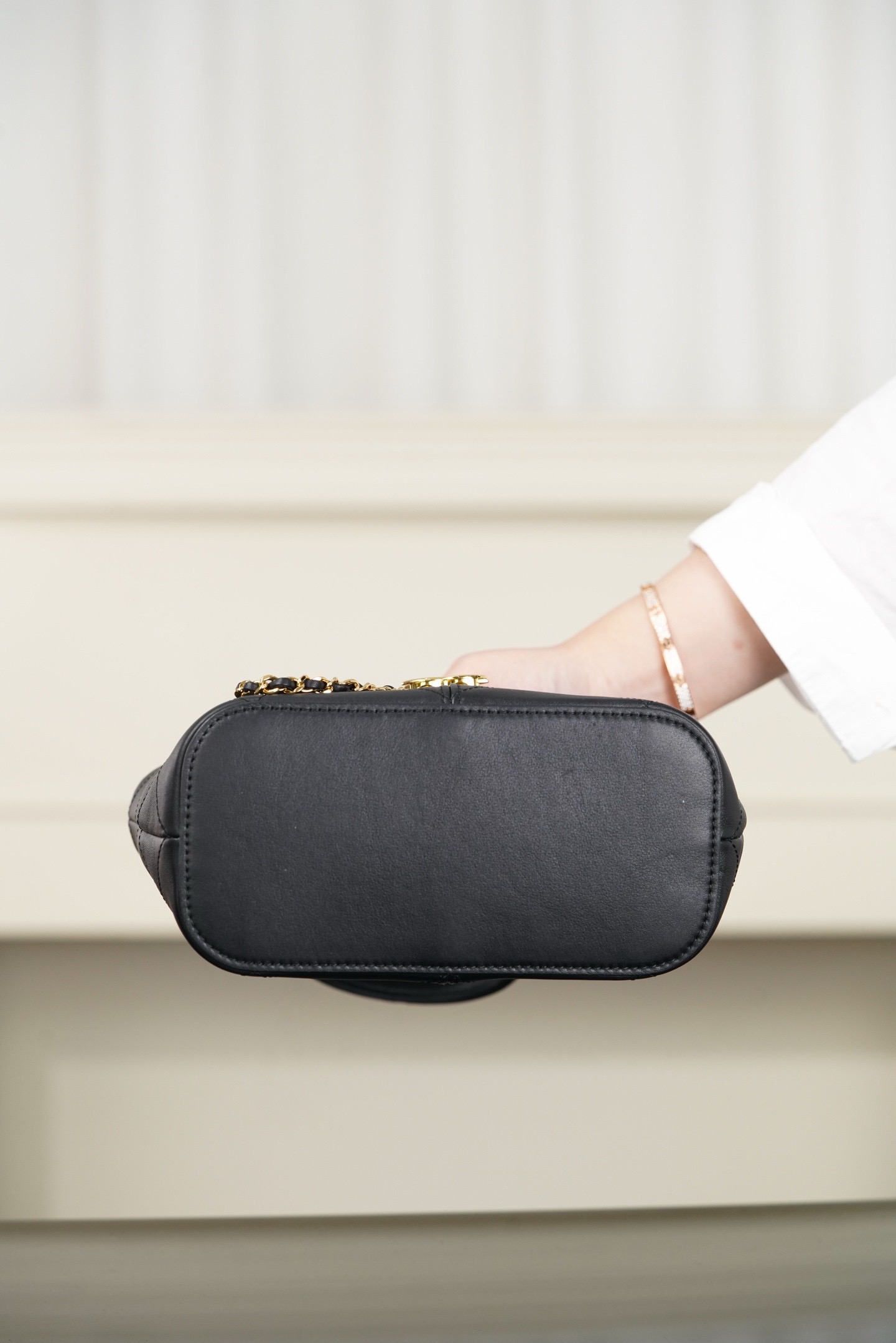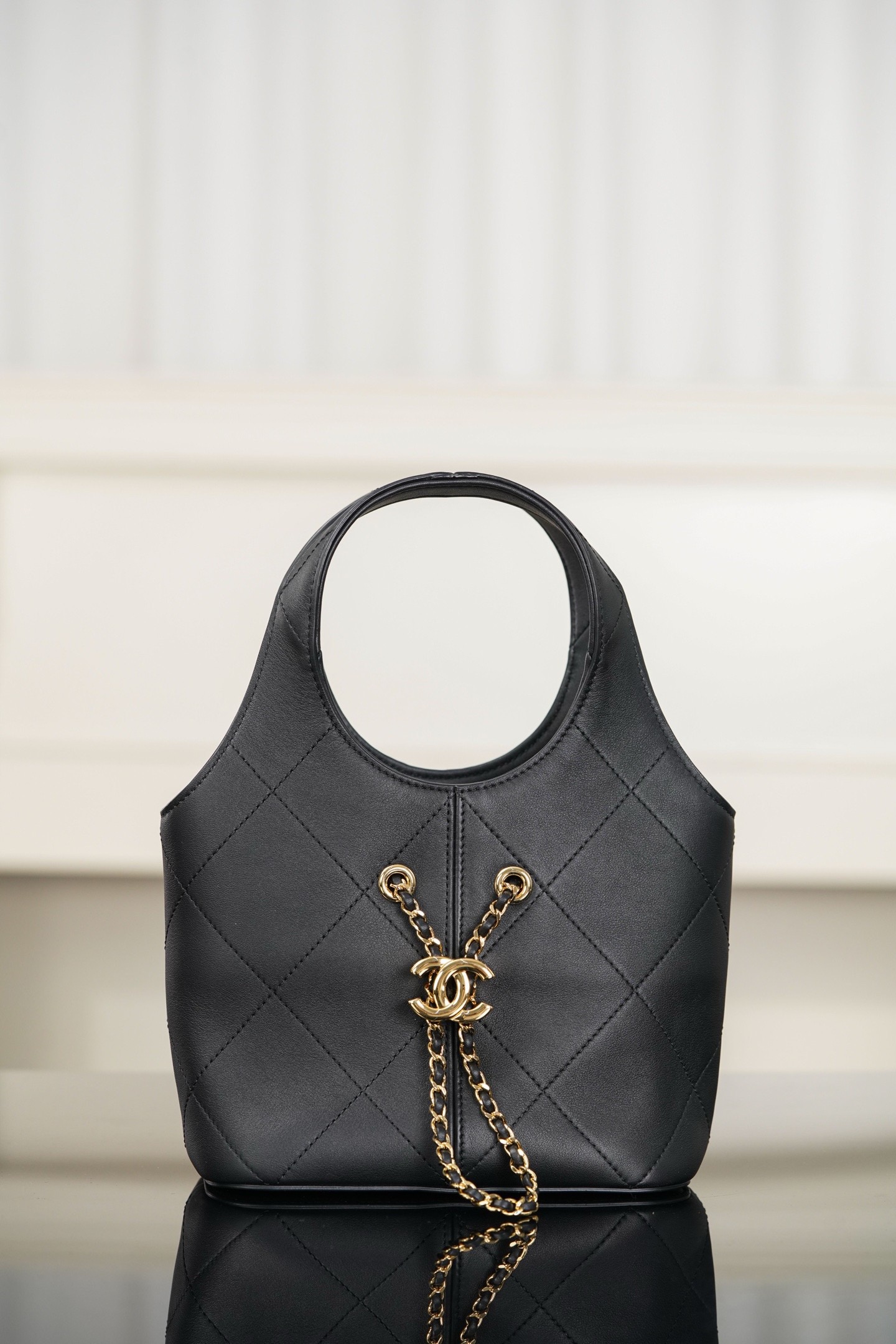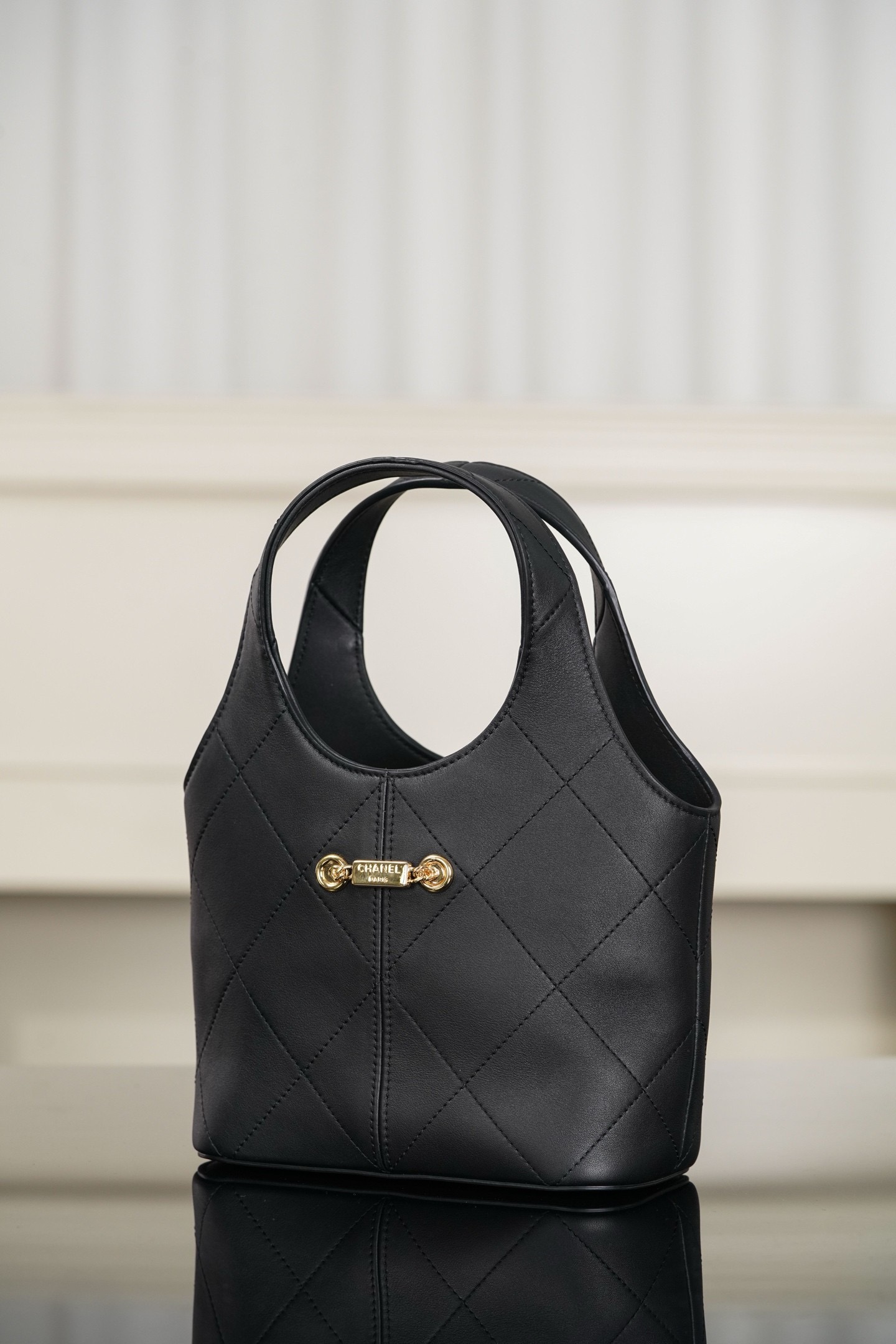 CHANEL 26P Double C LOGO diamond-shaped calfskin with gold metal shopping bag, small black handbag