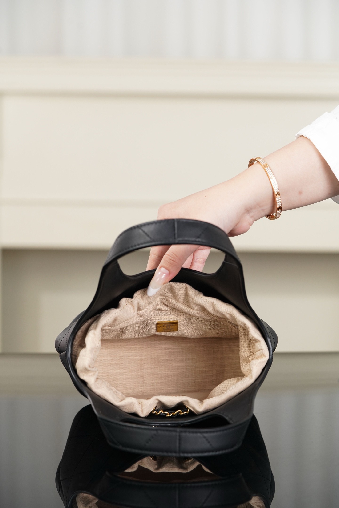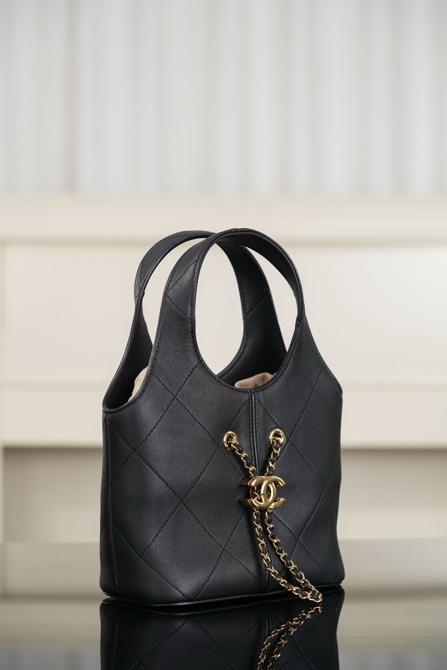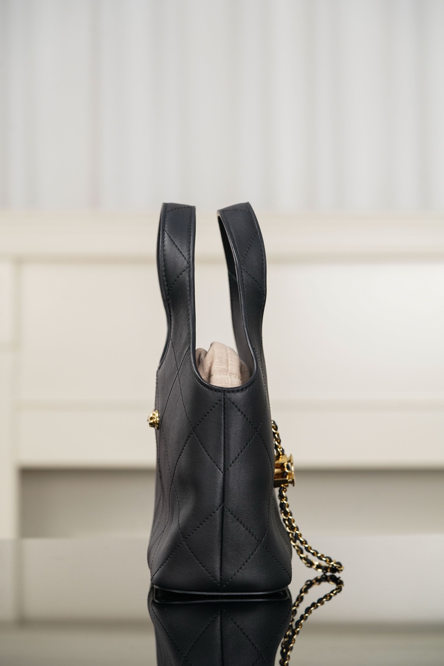 CHANEL 26P Double C LOGO diamond-shaped calfskin with gold metal shopping bag, small black handbag