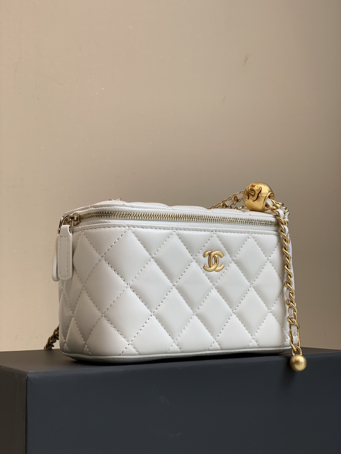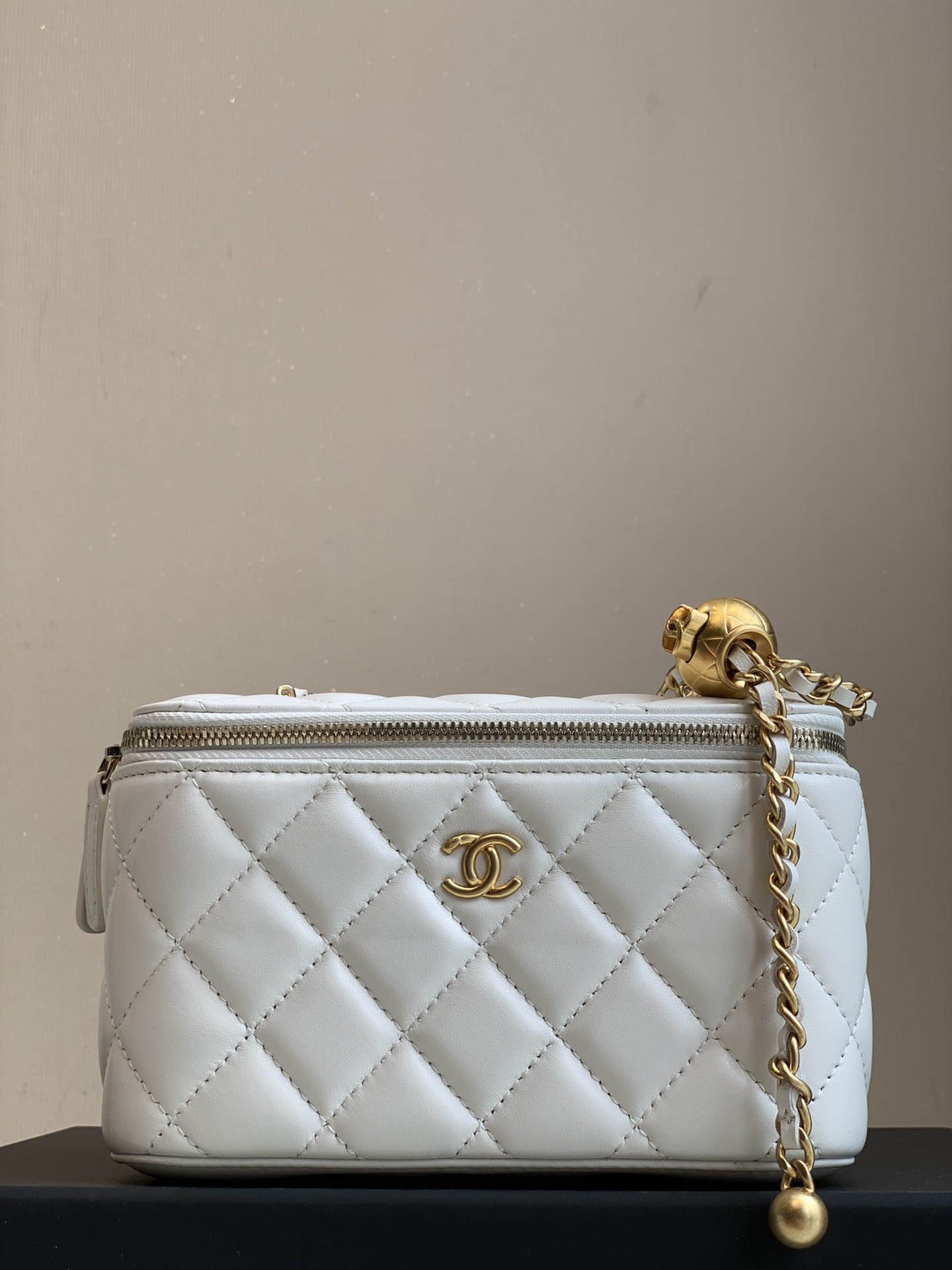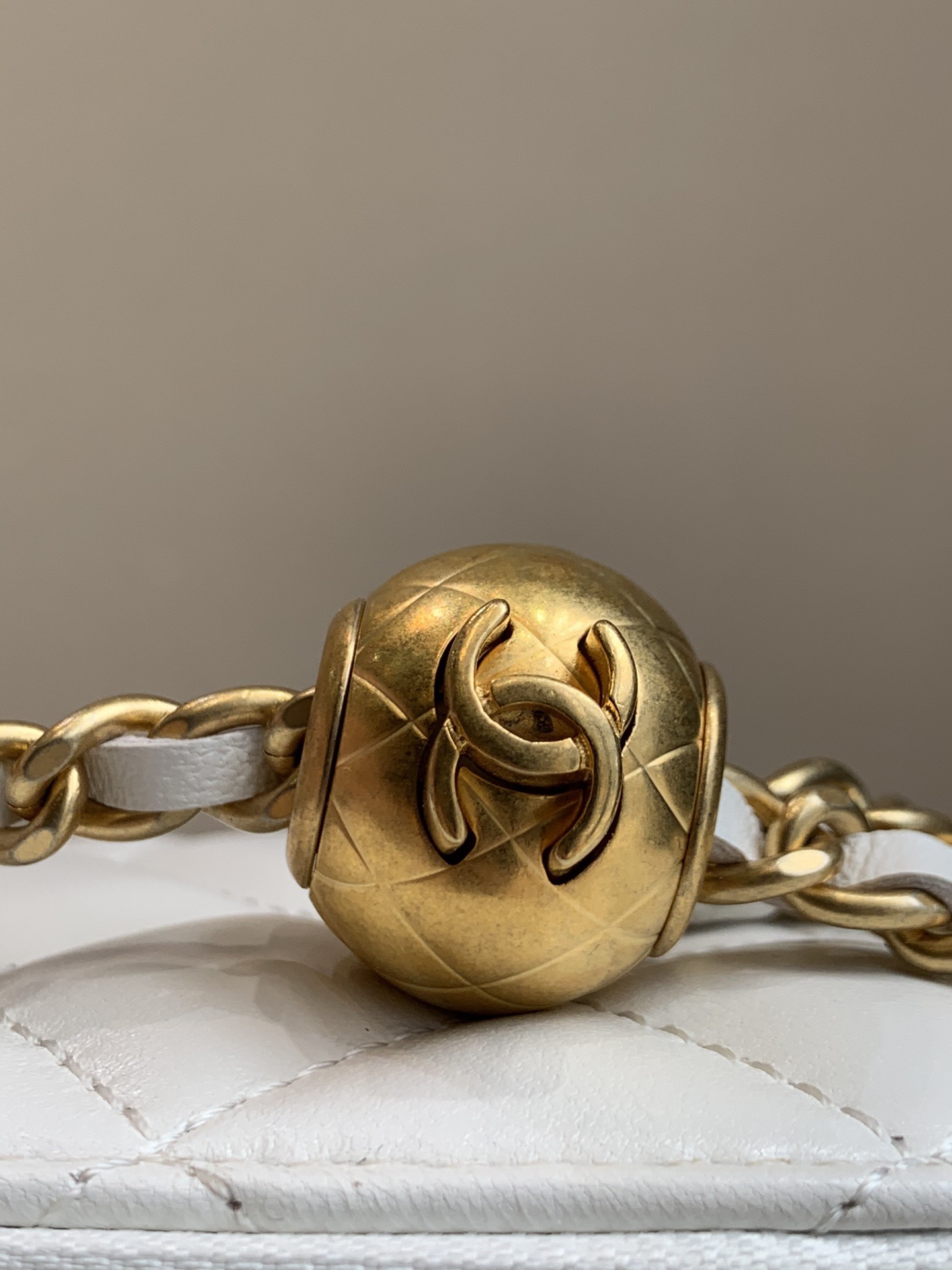 CHANEL little golden ball diamond-patterned leather chain-through sheepskin box bag, single-shoulder crossbody bag, regular white