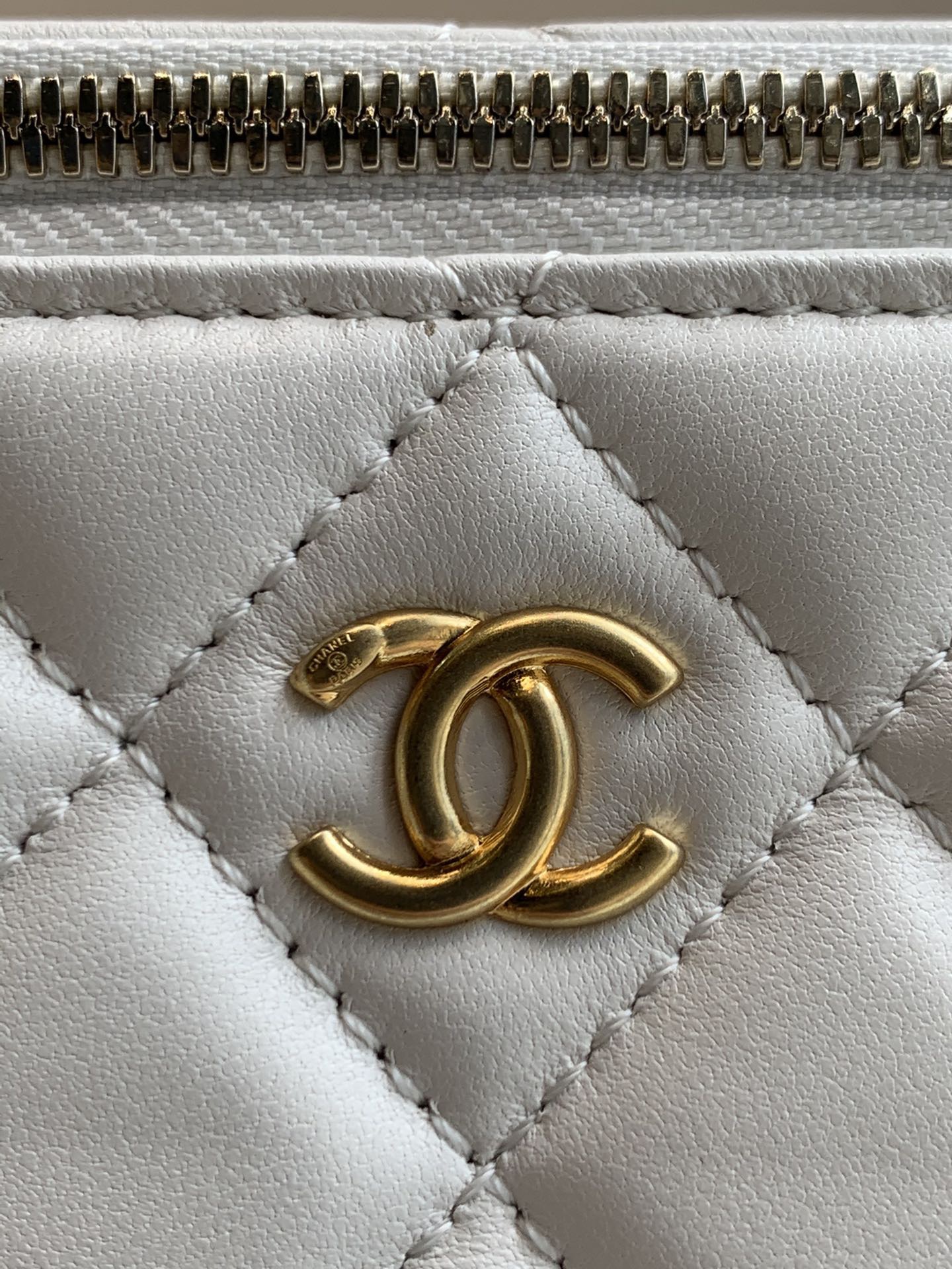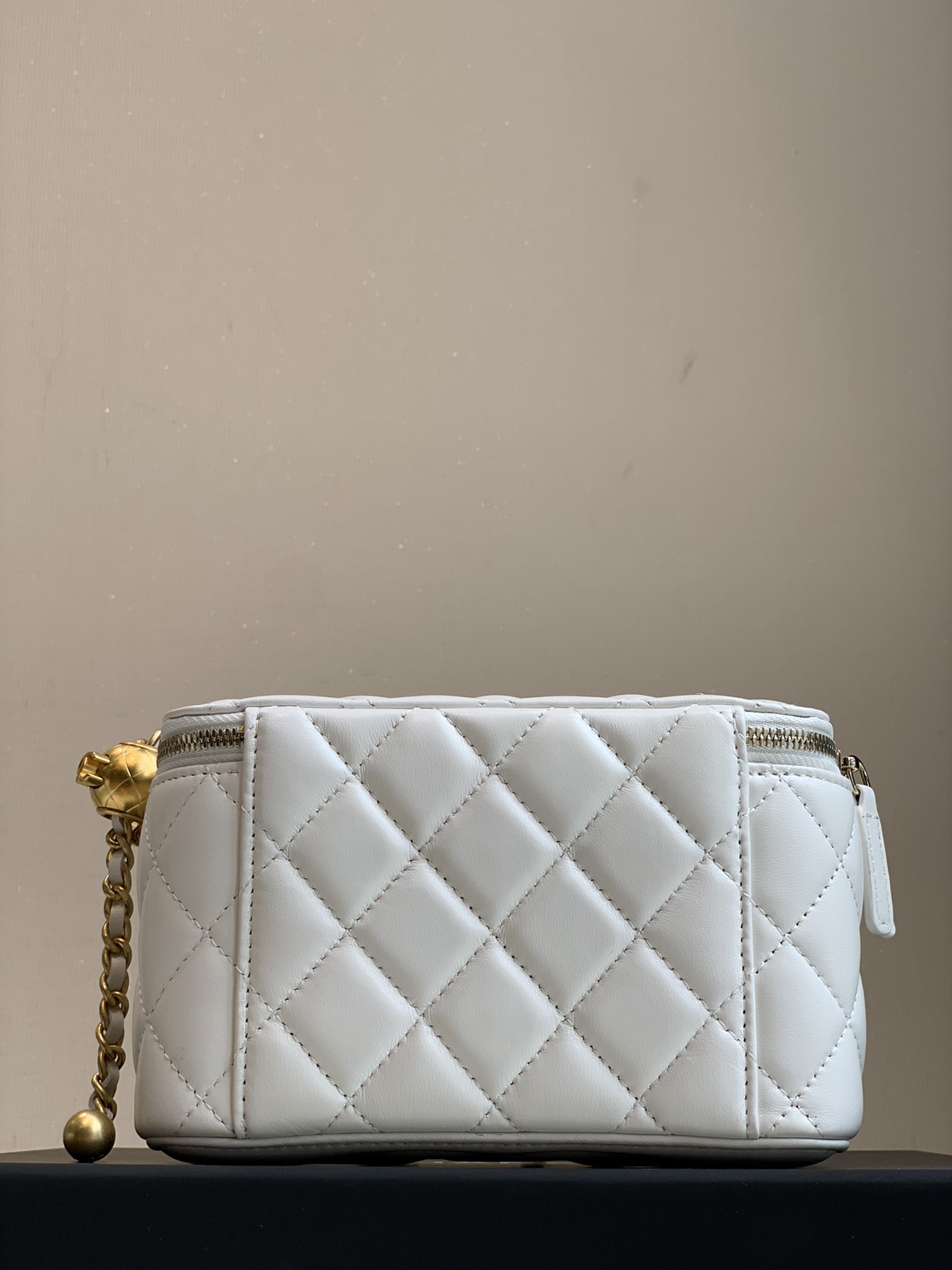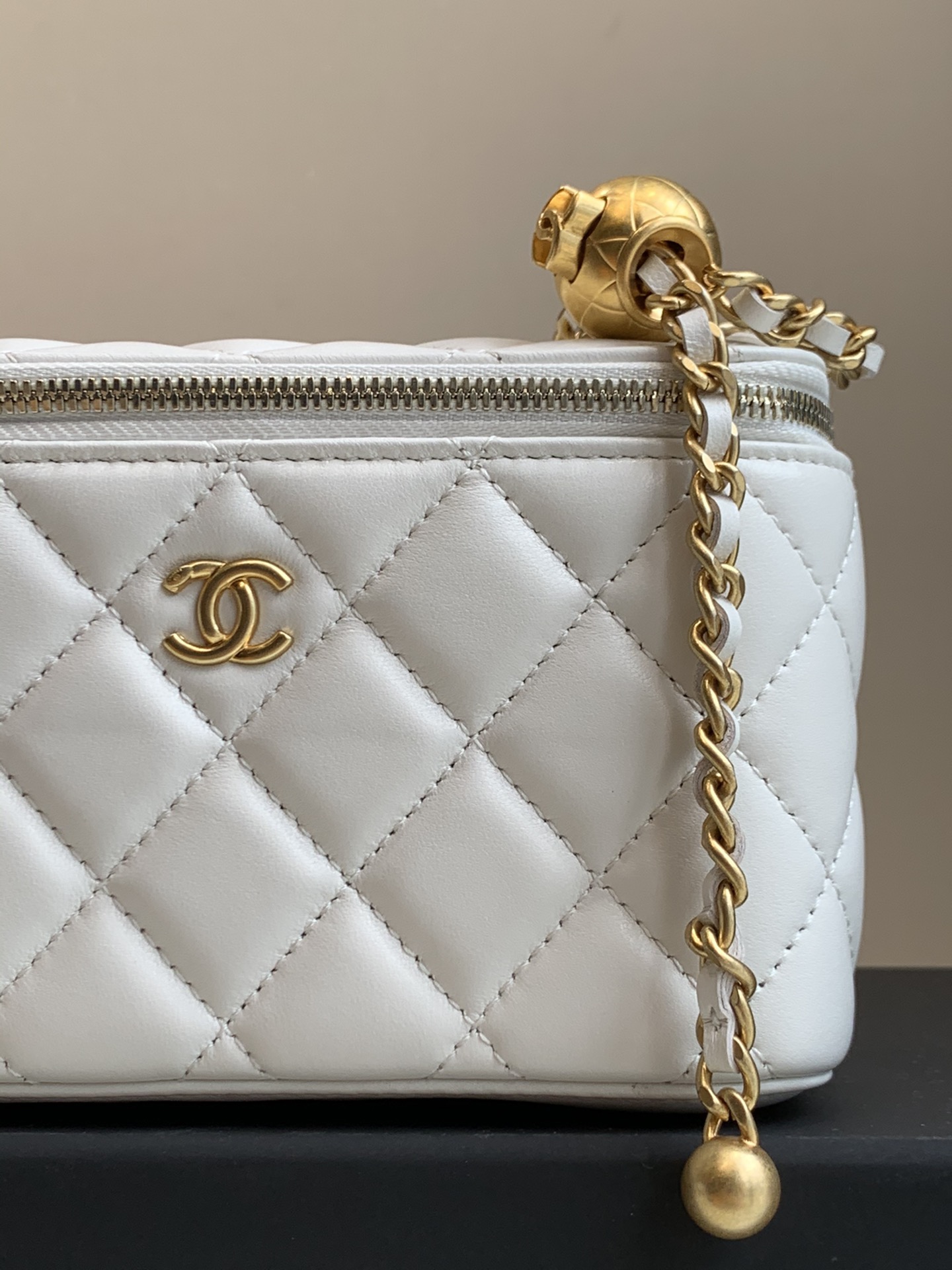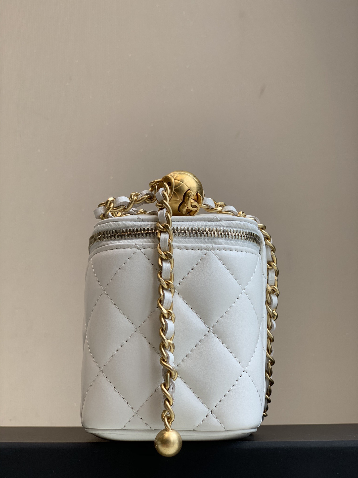 CHANEL little golden ball diamond-patterned leather chain-through sheepskin box bag, single-shoulder crossbody bag, regular white
