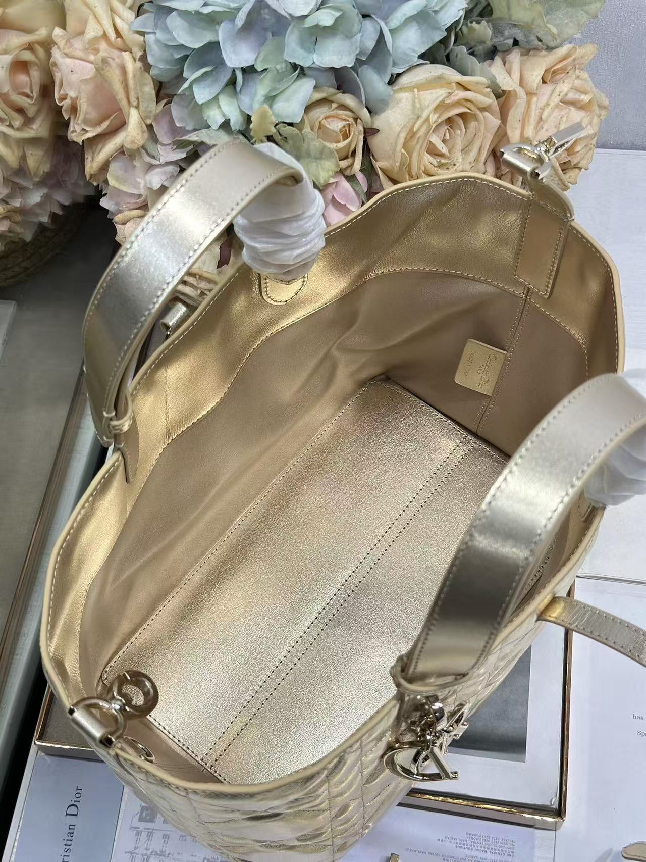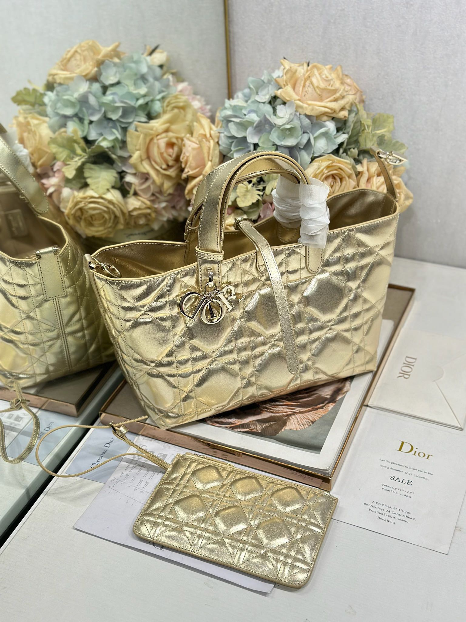 DIOR Toujours metal pendant adjustable shoulder strap Indigenous bag single-shoulder handbag medium-sized women\'s gold