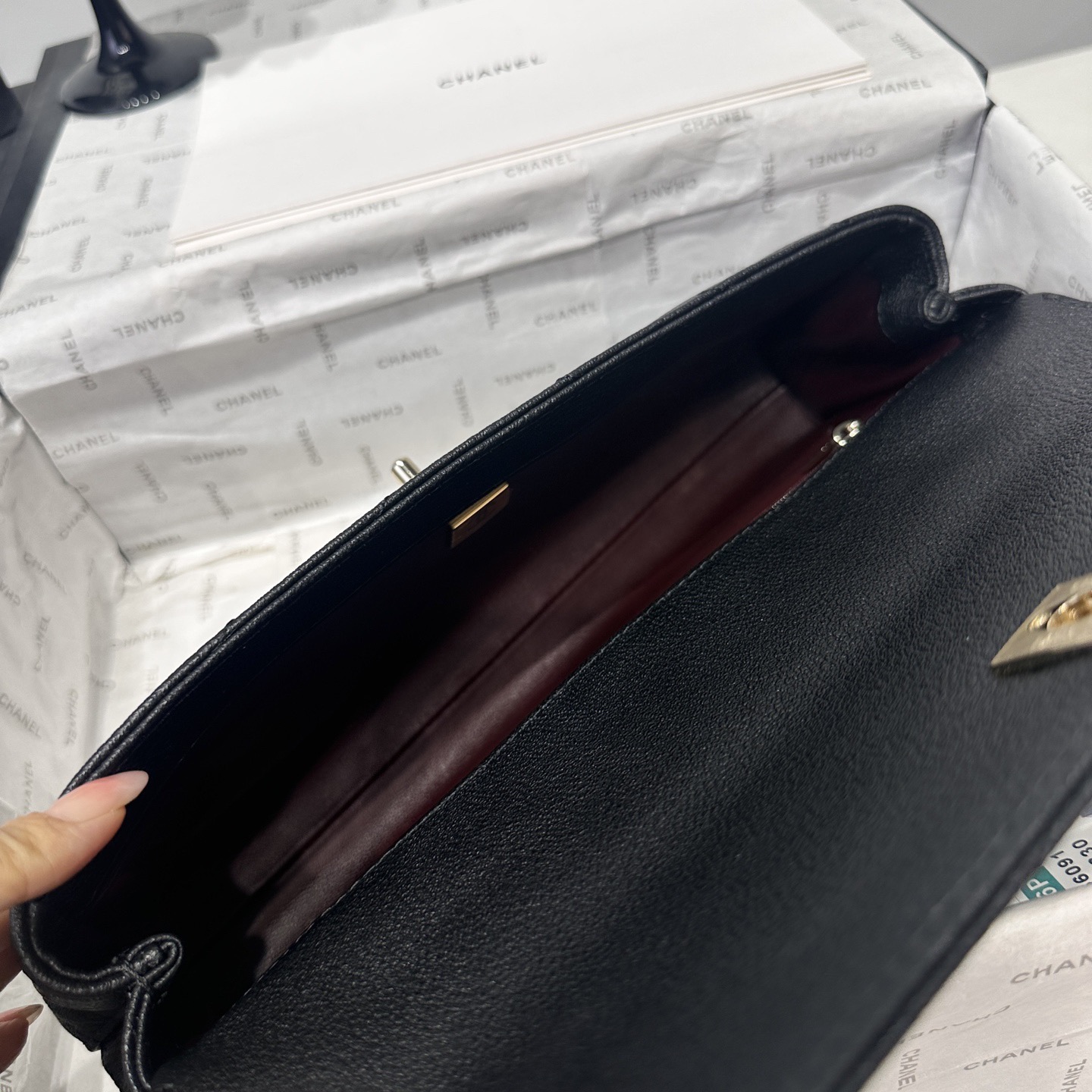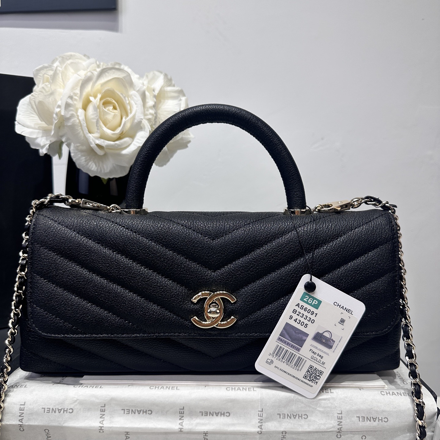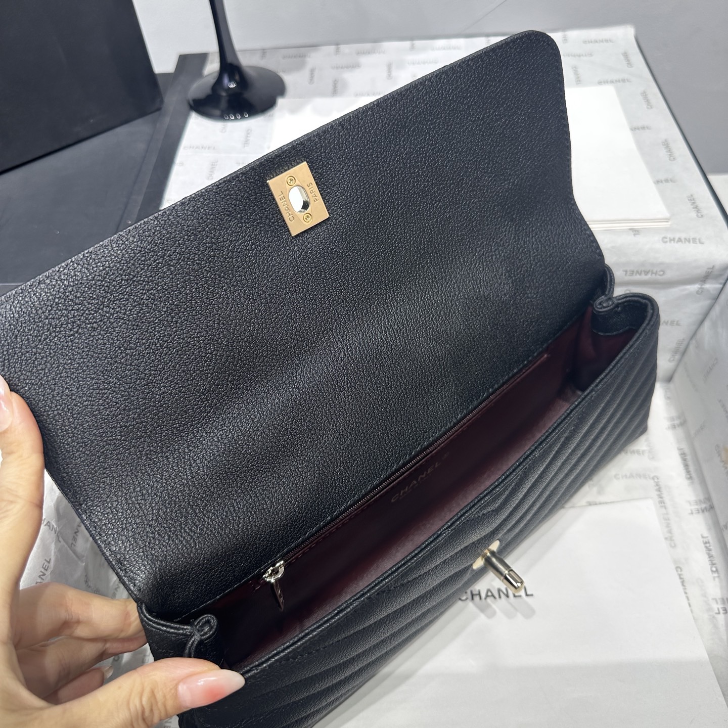 CHANEL 26P Double C Logo leather chain-stitched goatskin with bright gold metal LIDS, oversized handbag for women