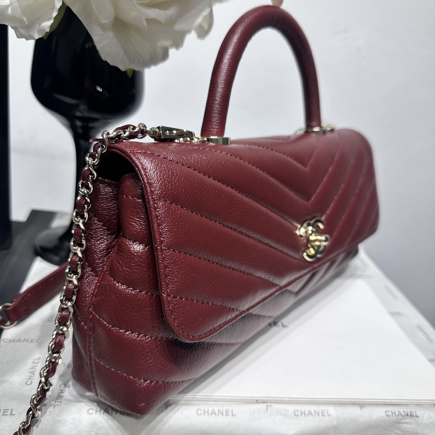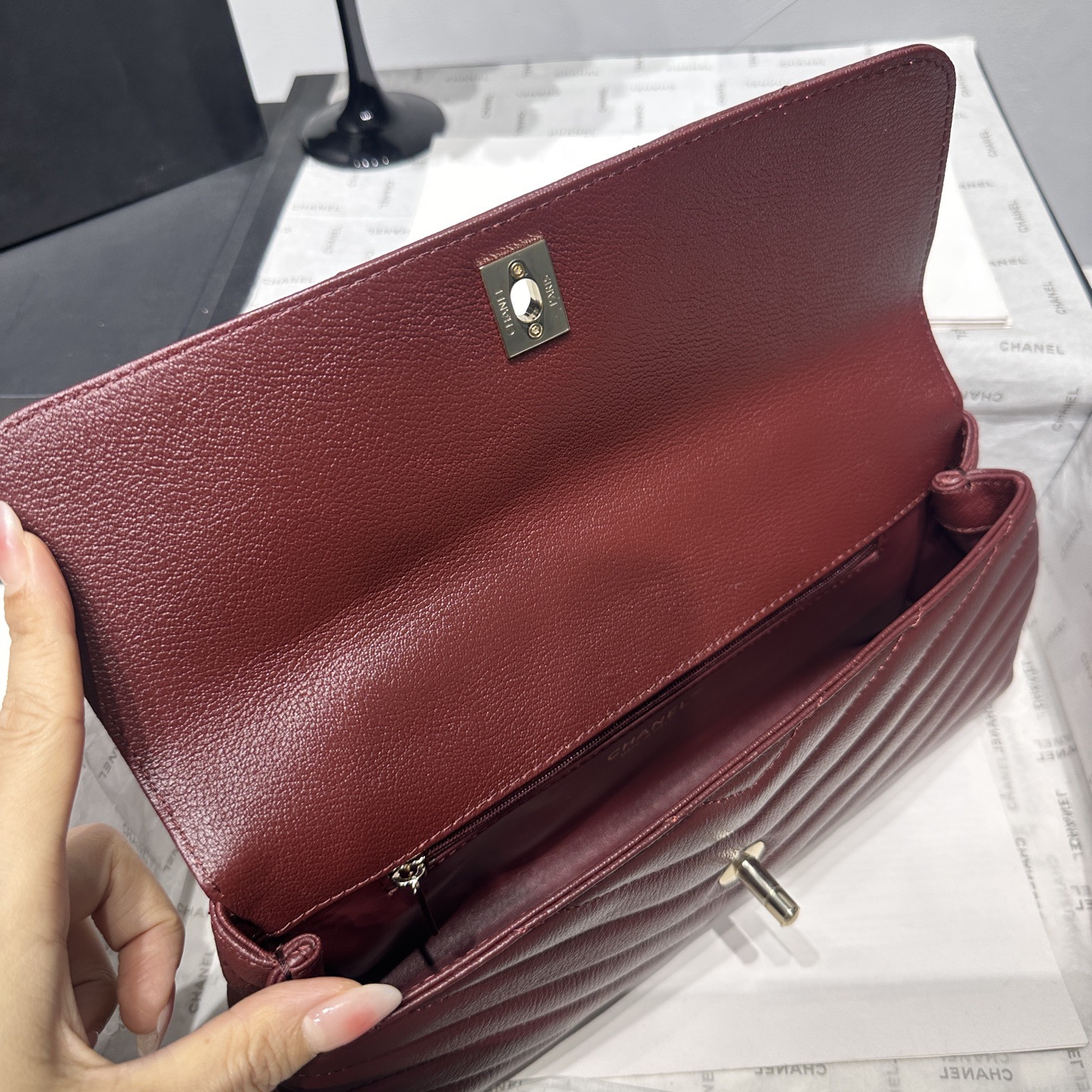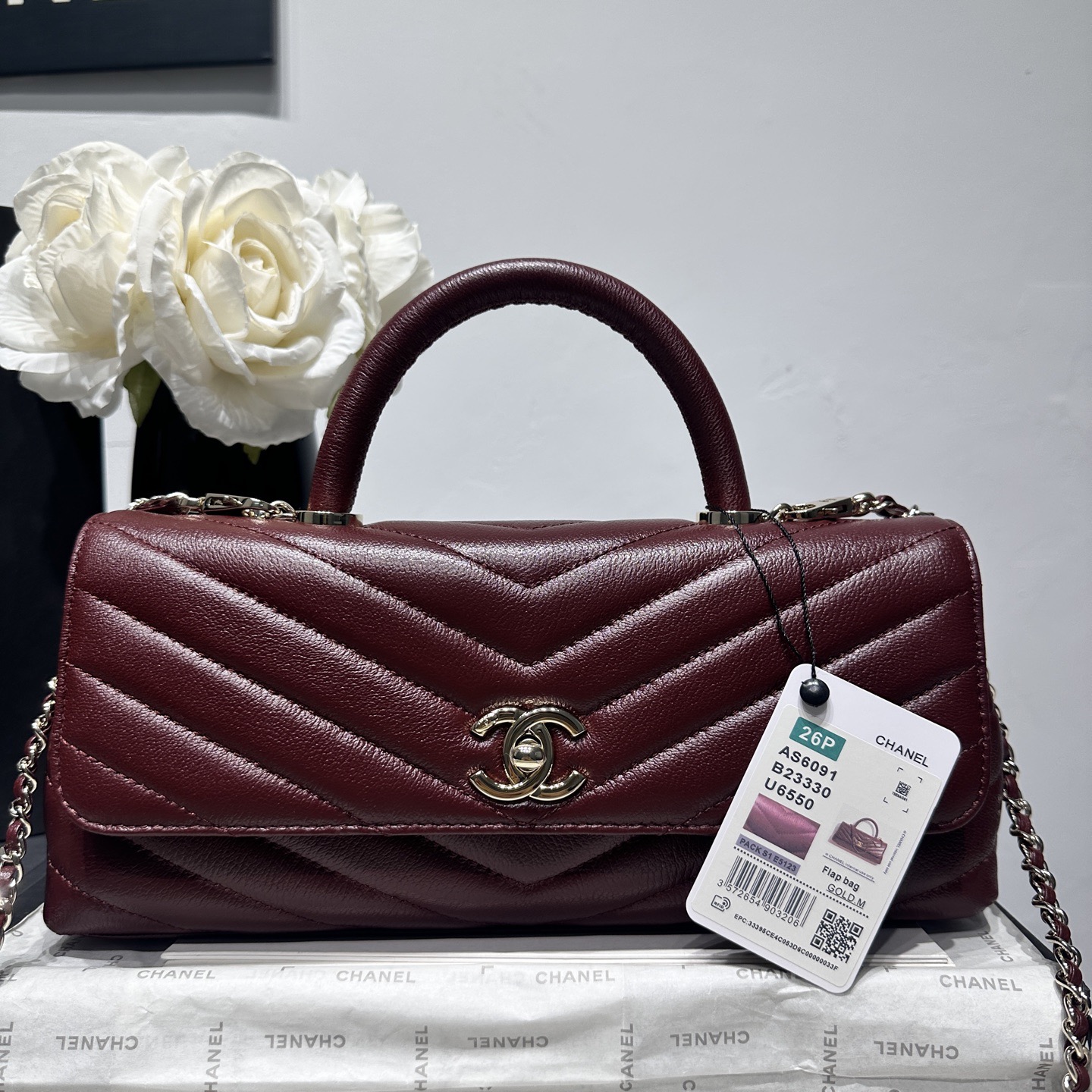 CHANEL 26P Double C Logo leather chain-stitched goatskin with bright gold metal LIDS, oversized handbag for women