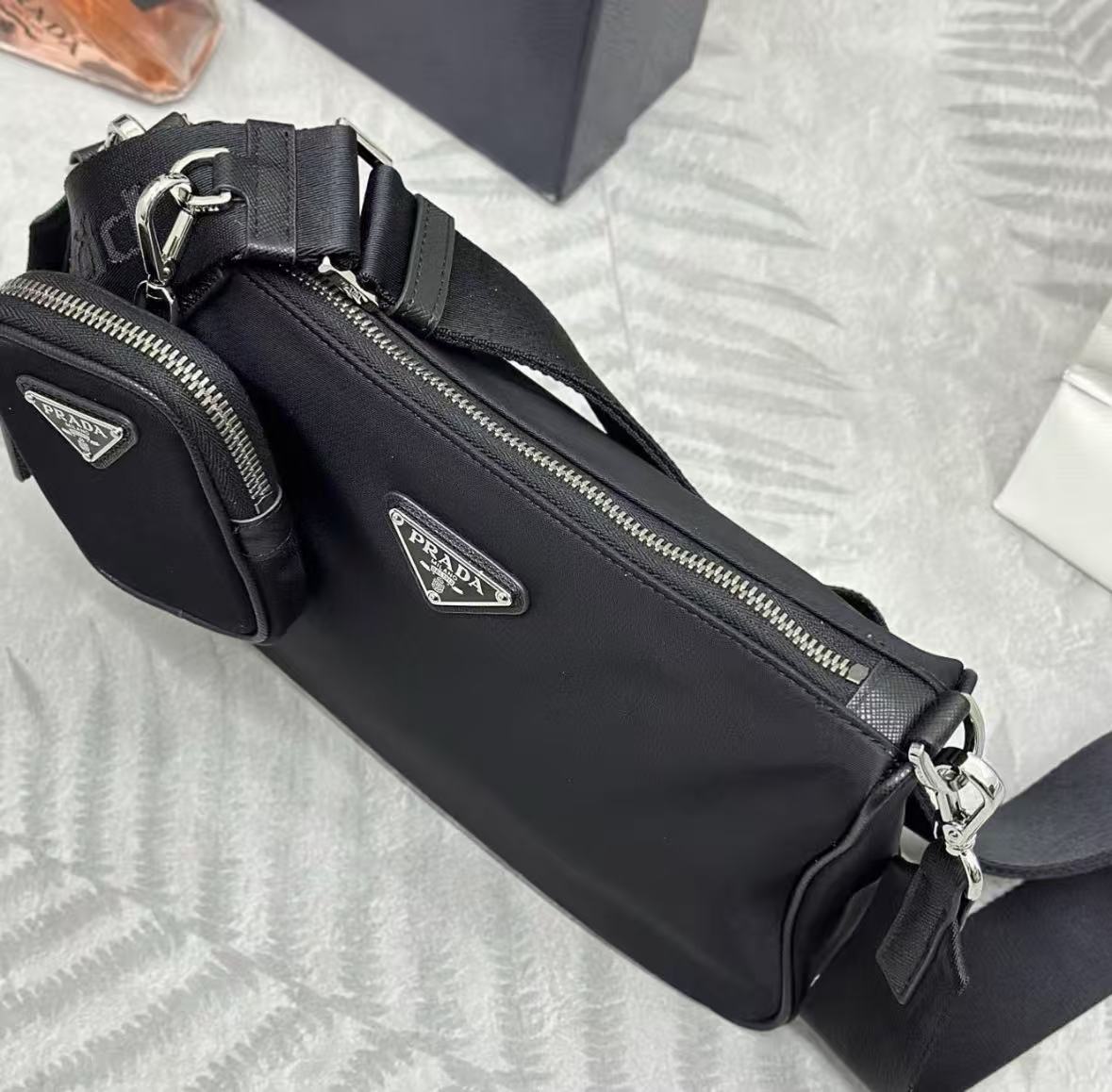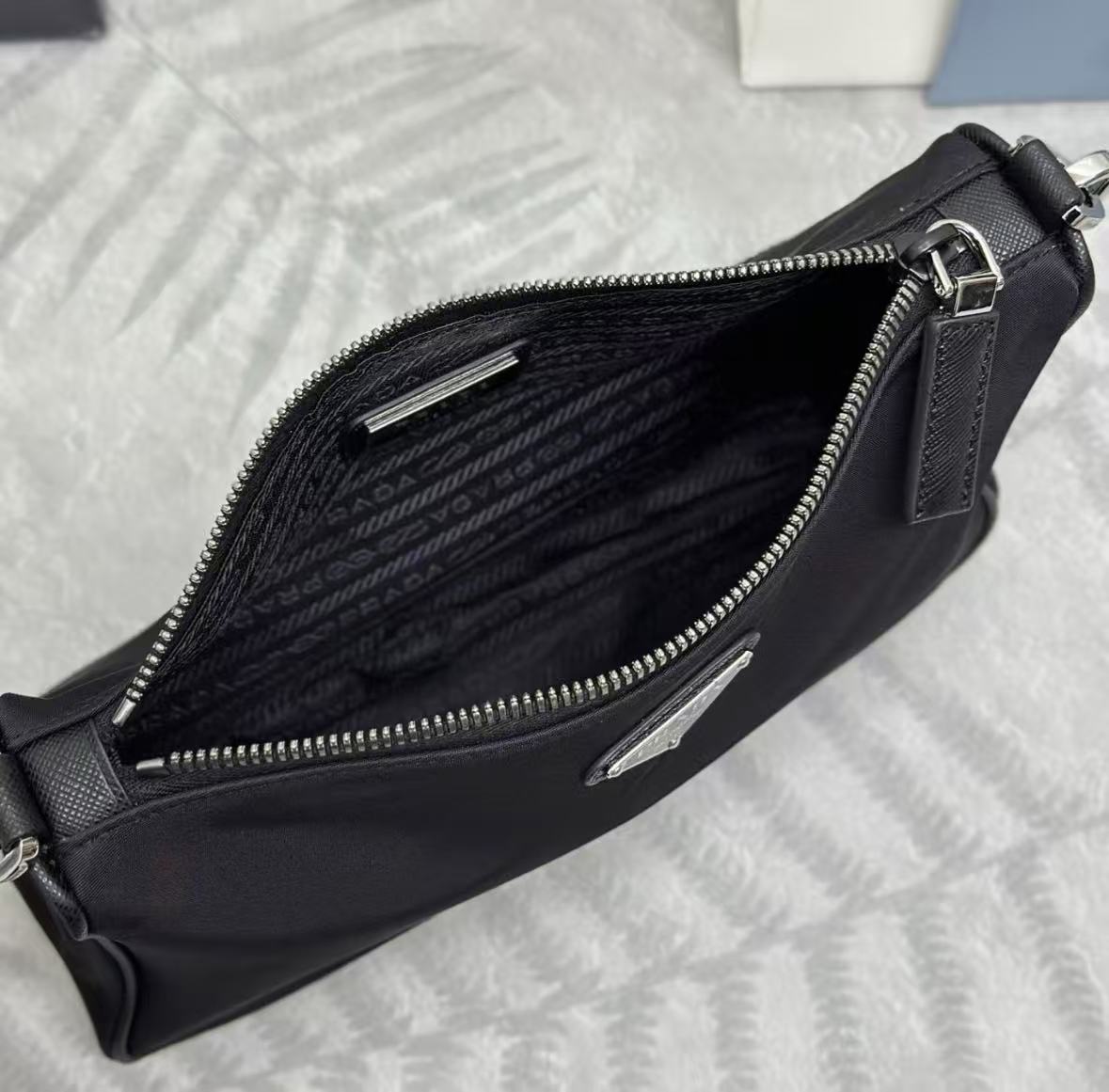PRADA Explore enamel metal triangular logo zipper open shoulder bag for women, large size