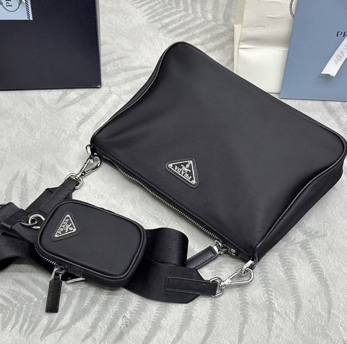 PRADA Saffiano multi-functional detachable shoulder strap three-in-one messenger bag, briefcase, crossbody bag, single-shoulder bag, regular men\'s black style