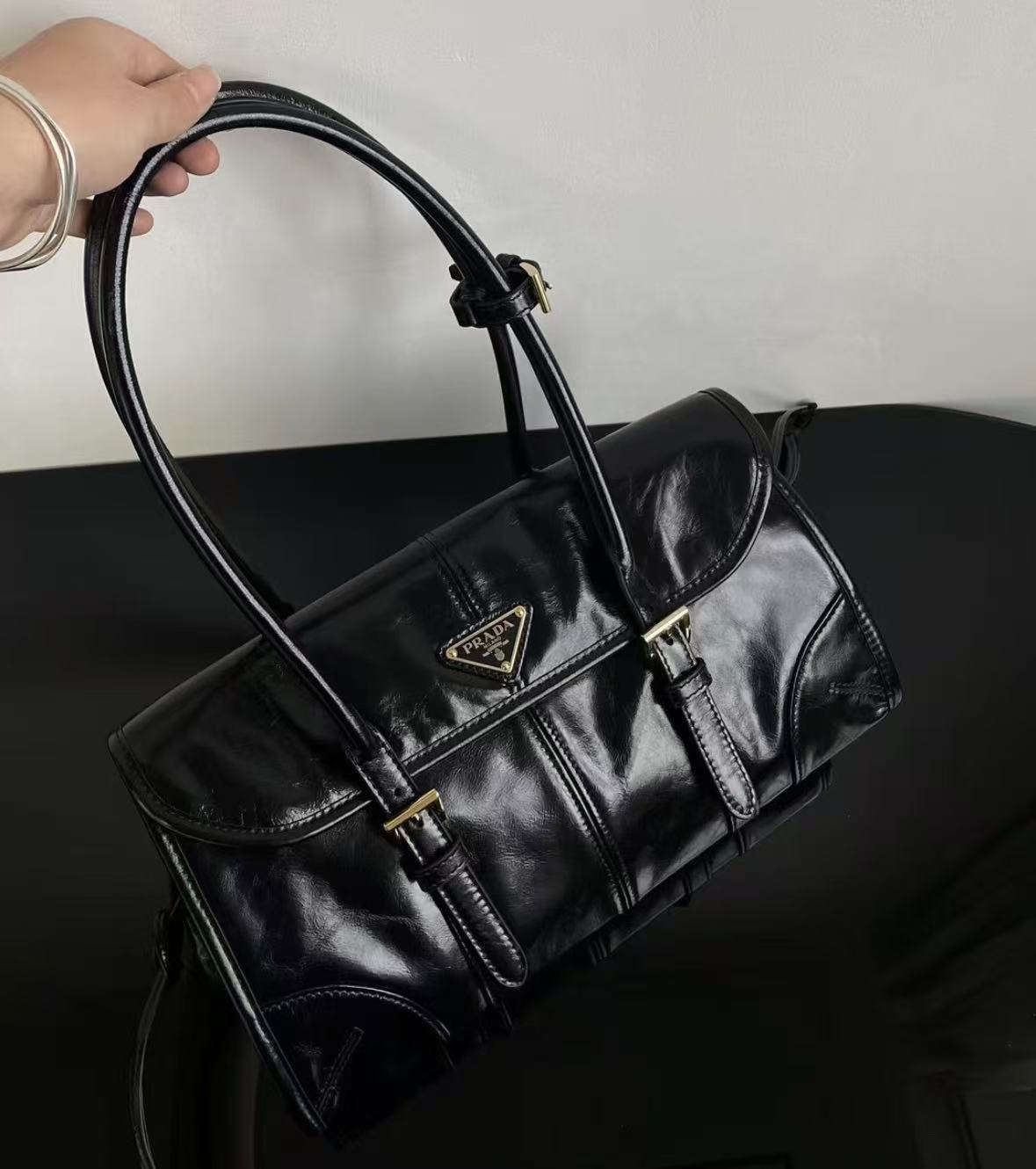 PRADA Explore enamel metal triangular logo zipper open shoulder bag for women, large size