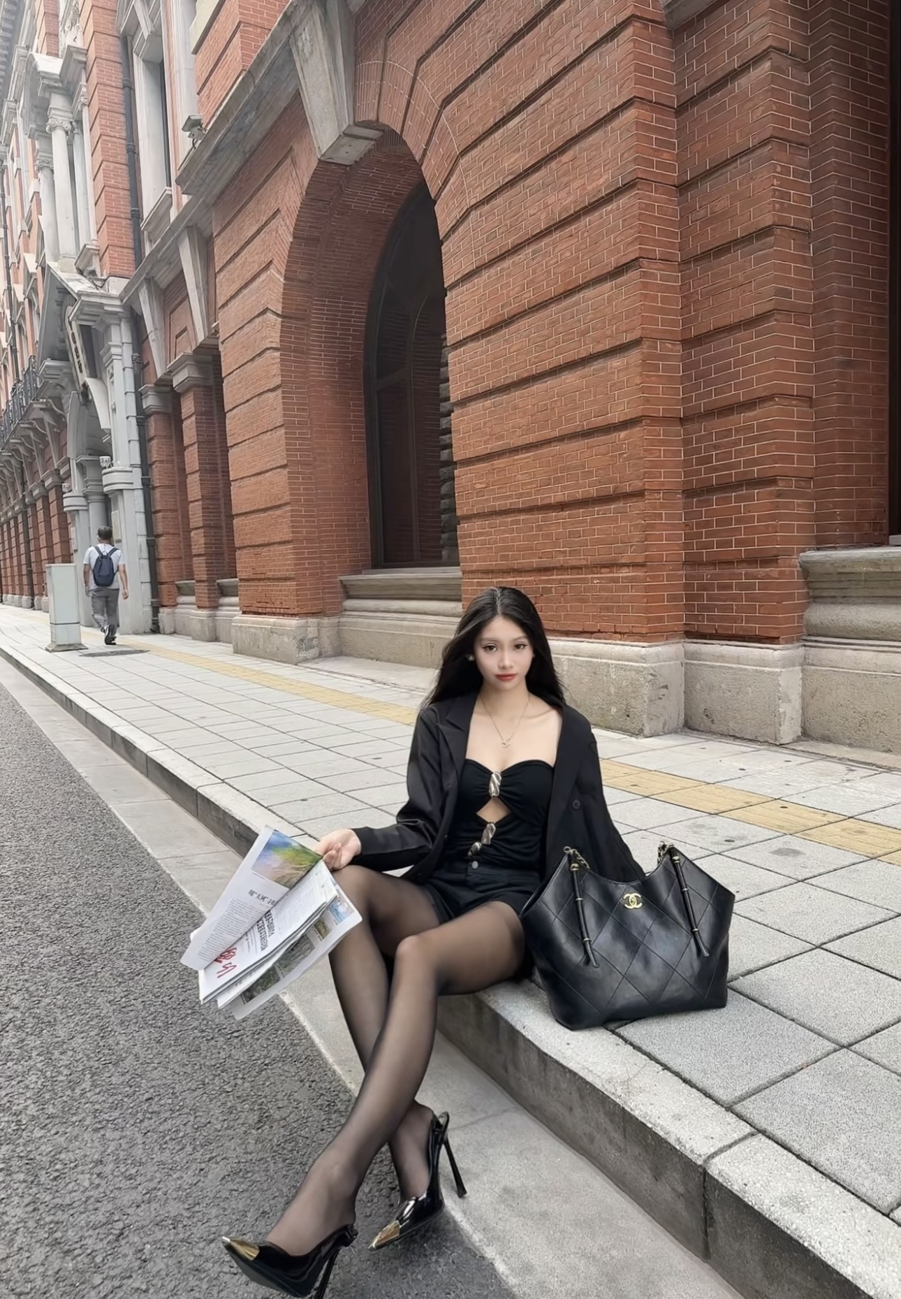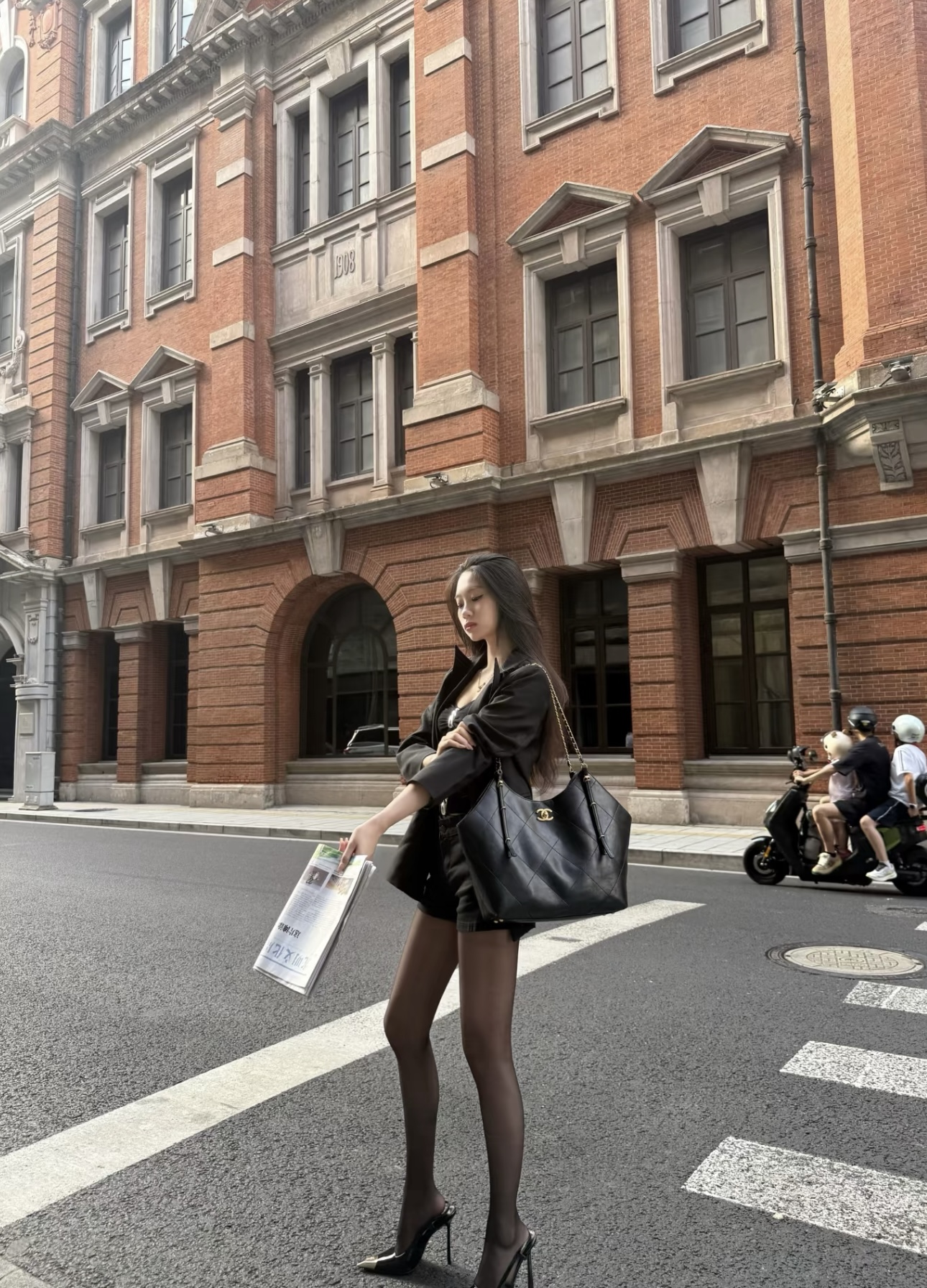 CHANEL 25S retro gold chain single-shoulder bag, large black
