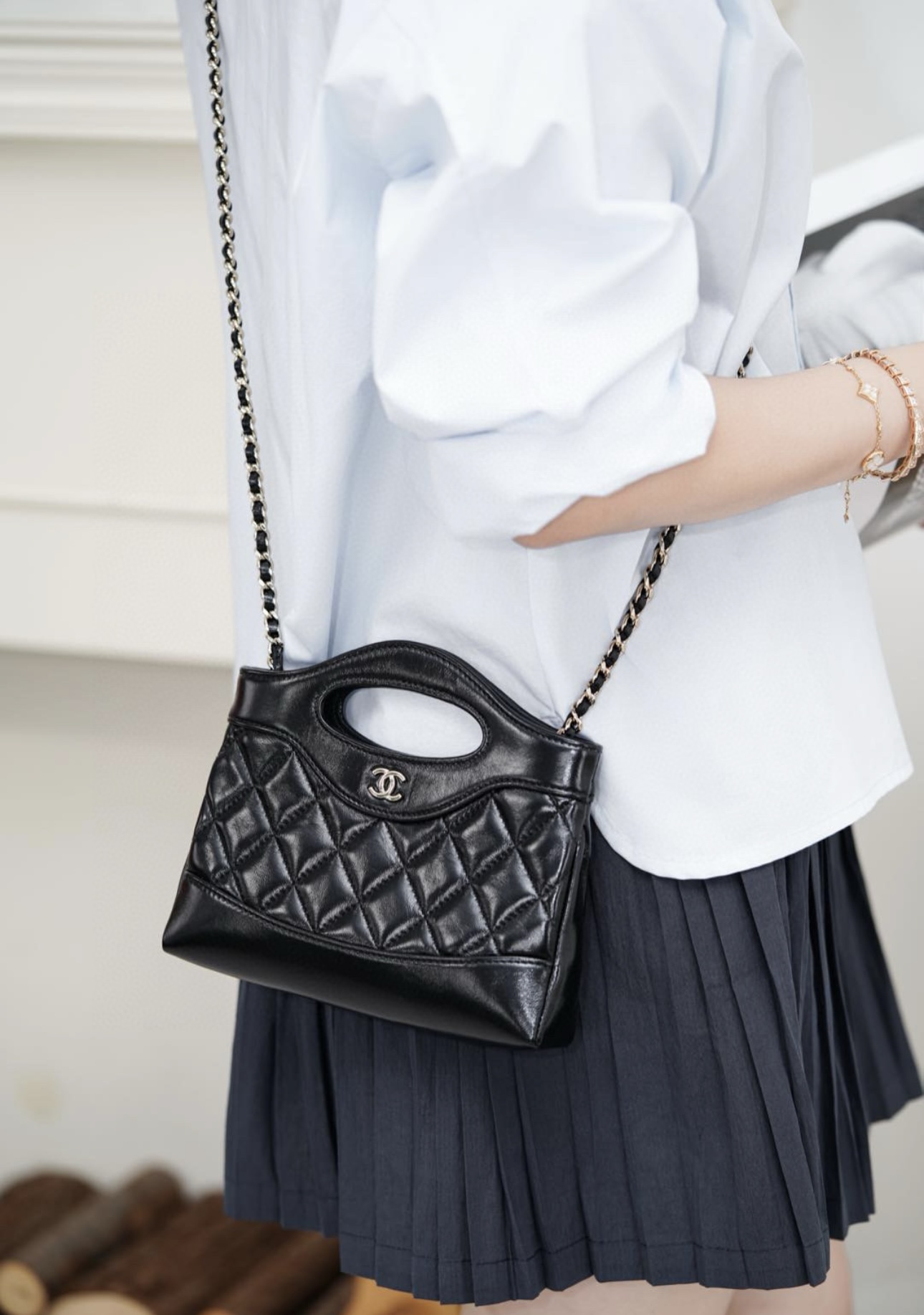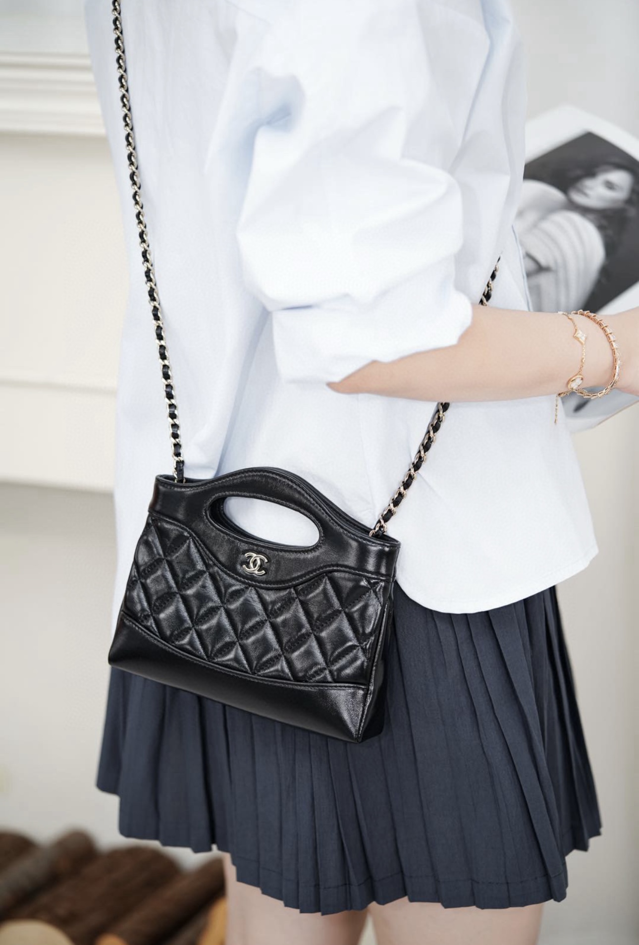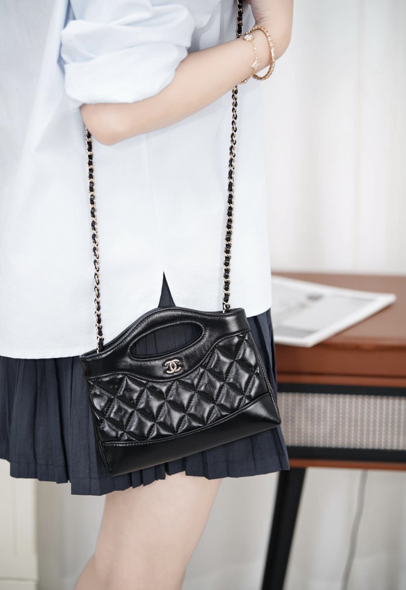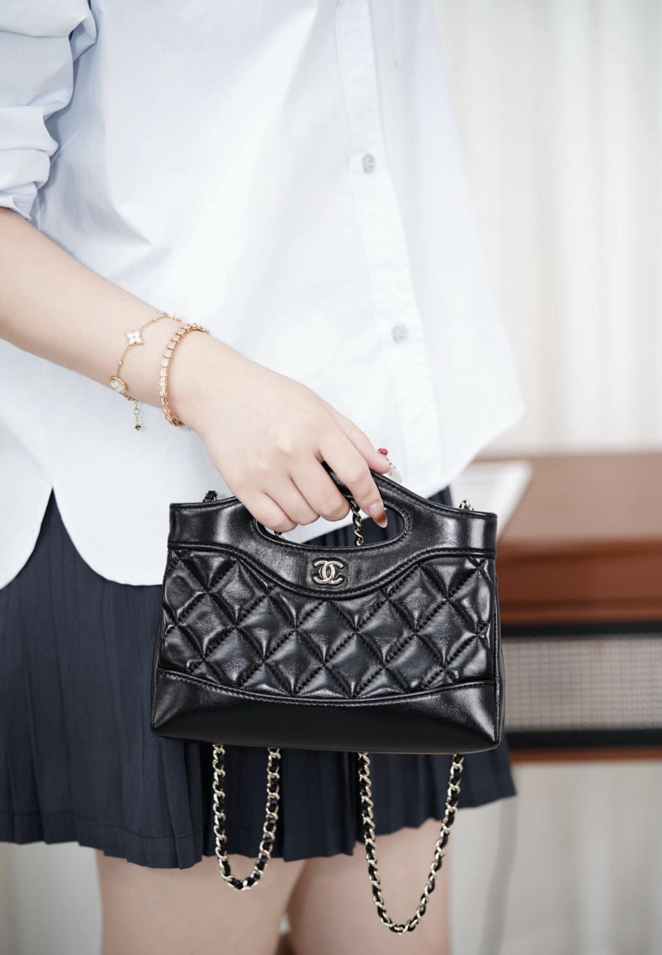 CHANEL⾹奈⼉ 31Bag 24S⾦扣 ⼿提单肩斜挎包 超迷你 ⿊⾊