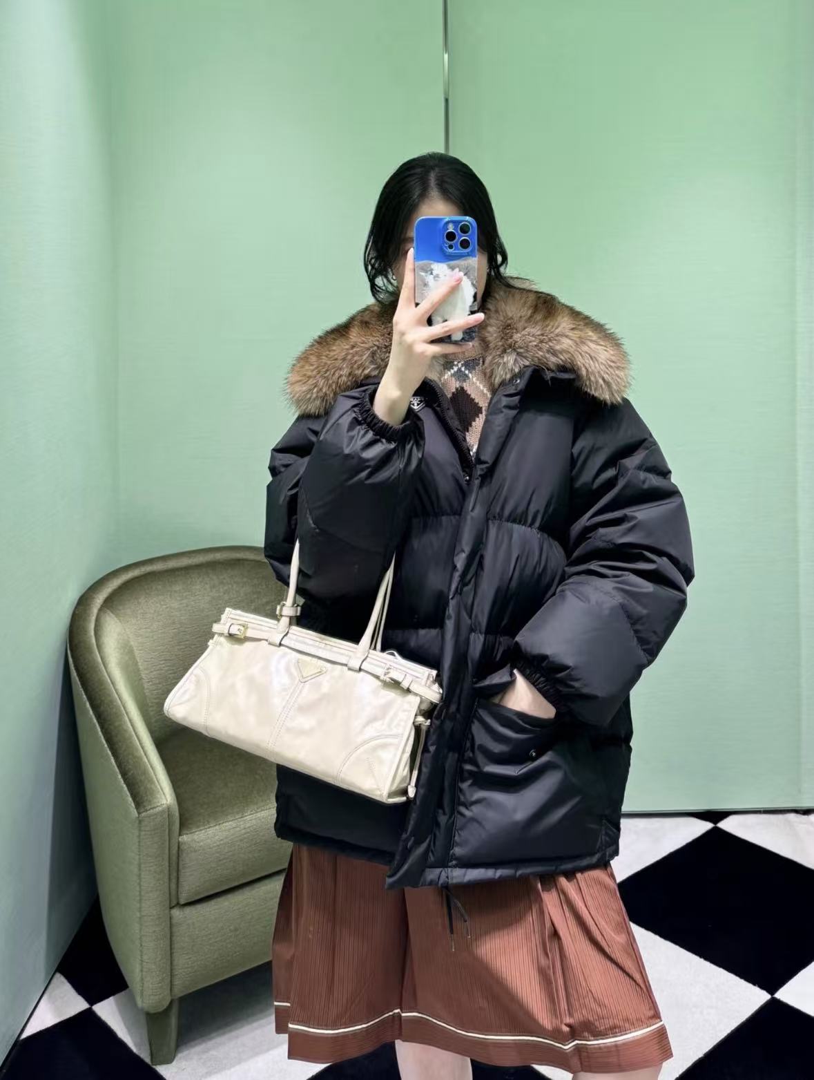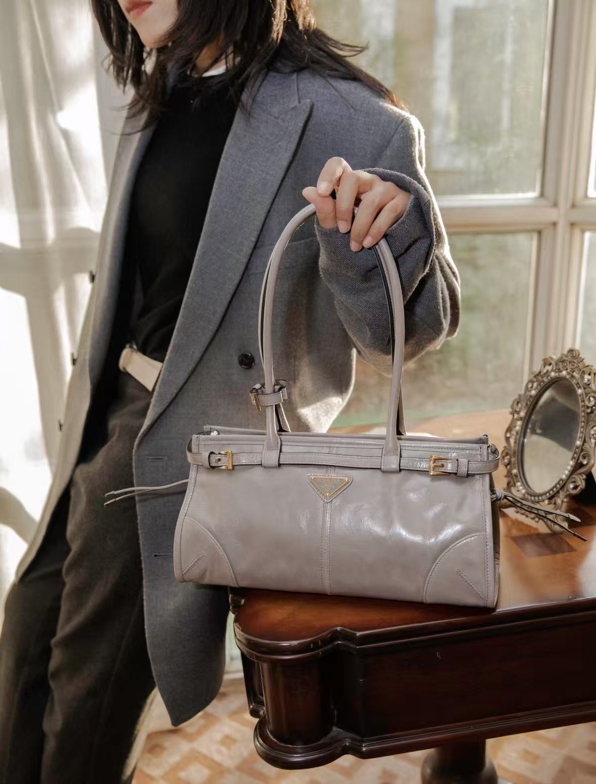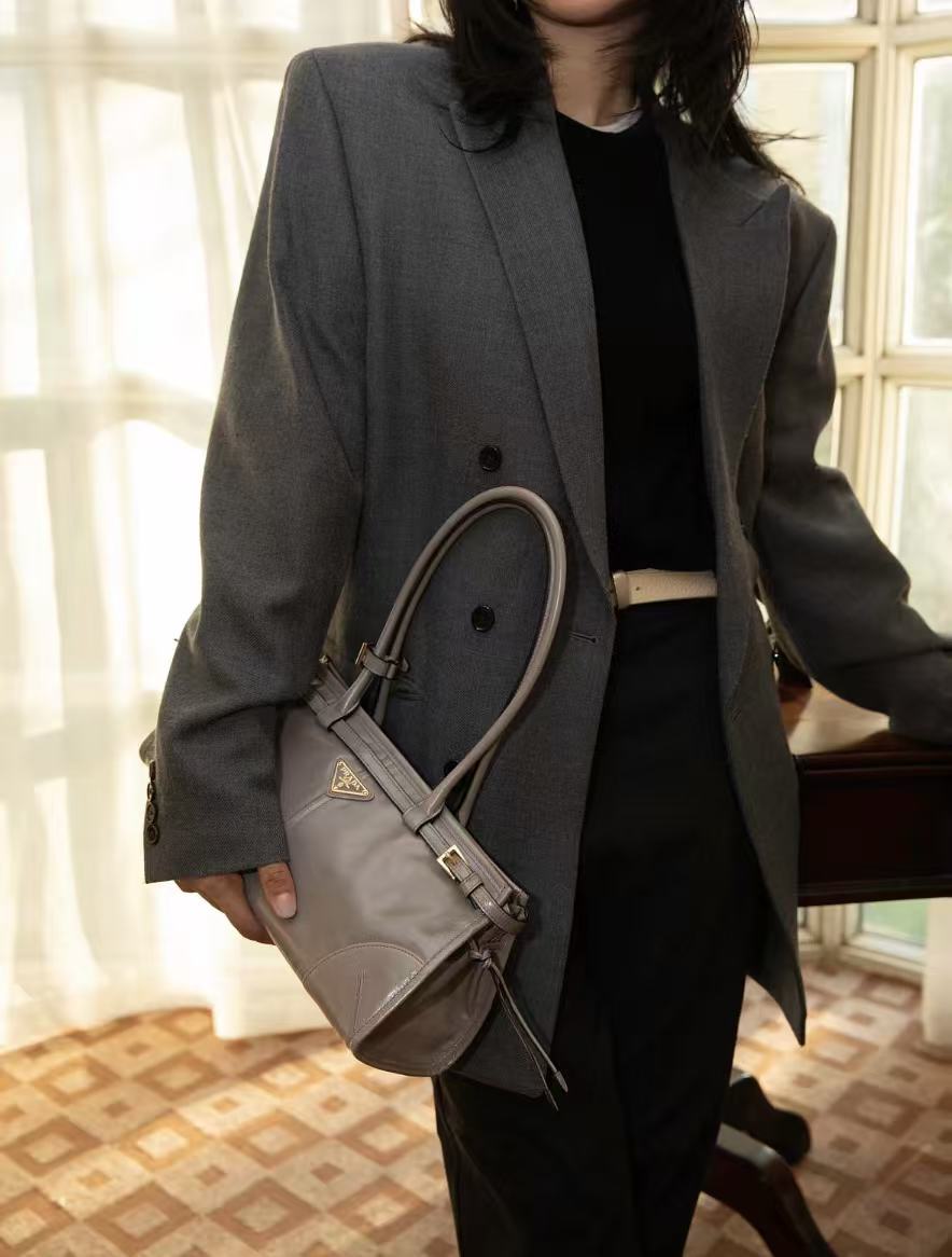 PRADA普拉达 Bonnie 涂珐琅三⻆形⾦属徽标 ⼿提包 迷你 ⼥款