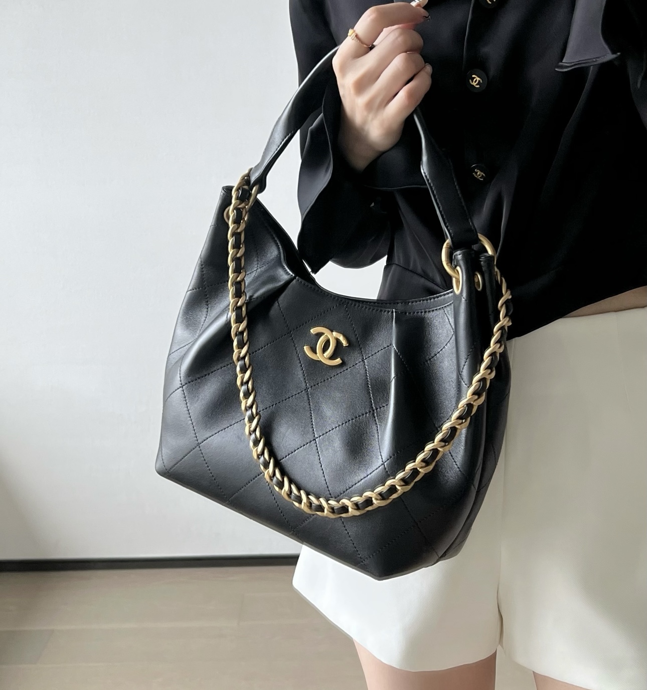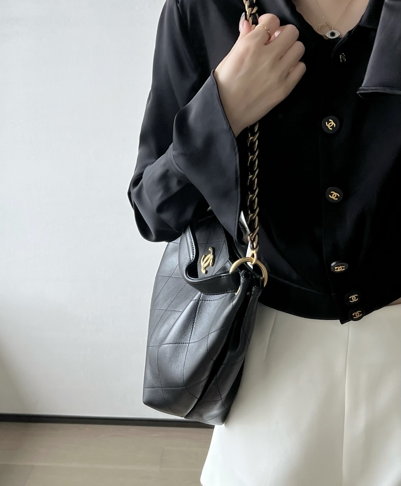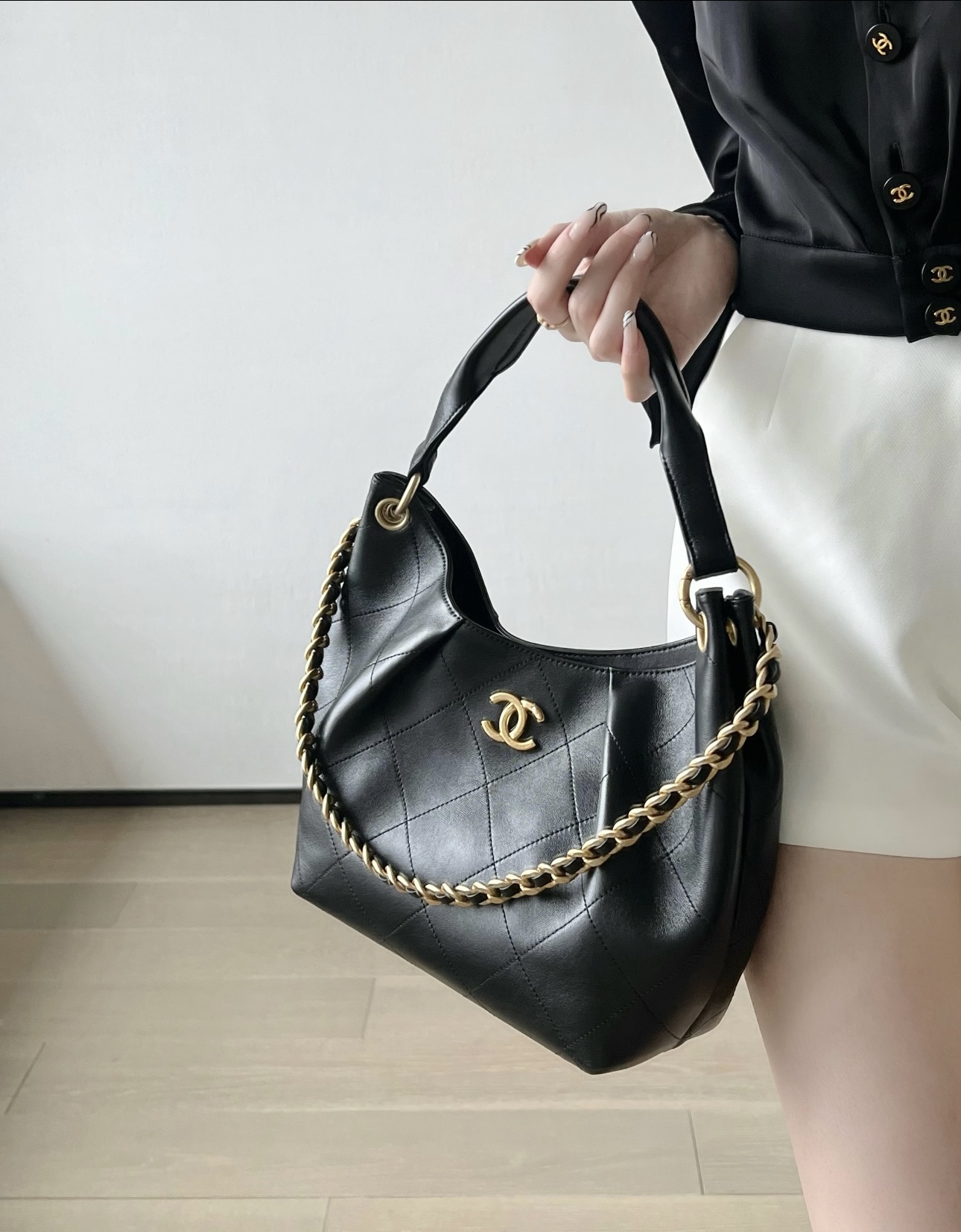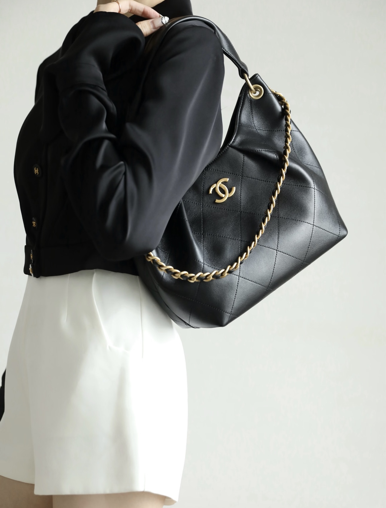 CHANEL香奈儿 26C 金标 双C Logo 单肩手提包 中号 黑色