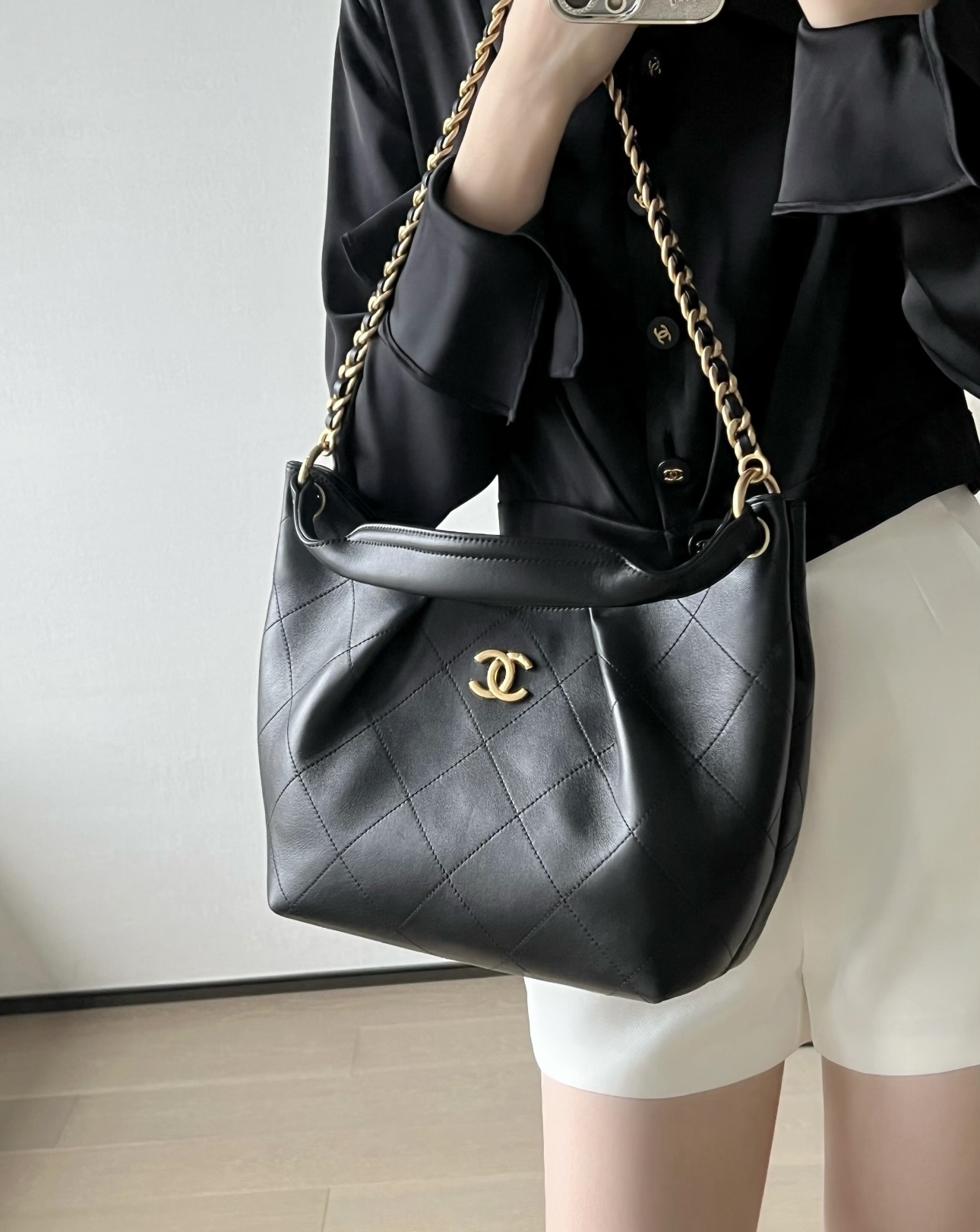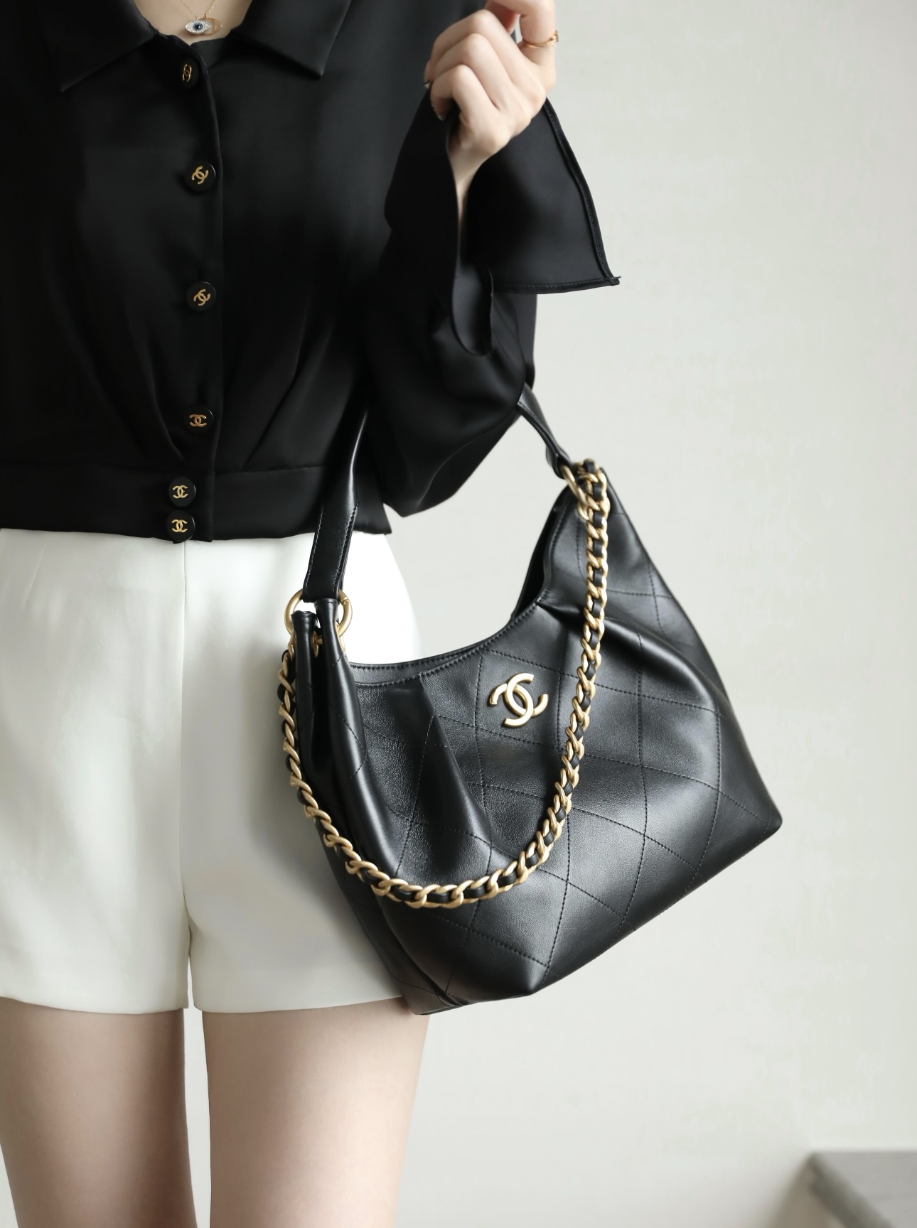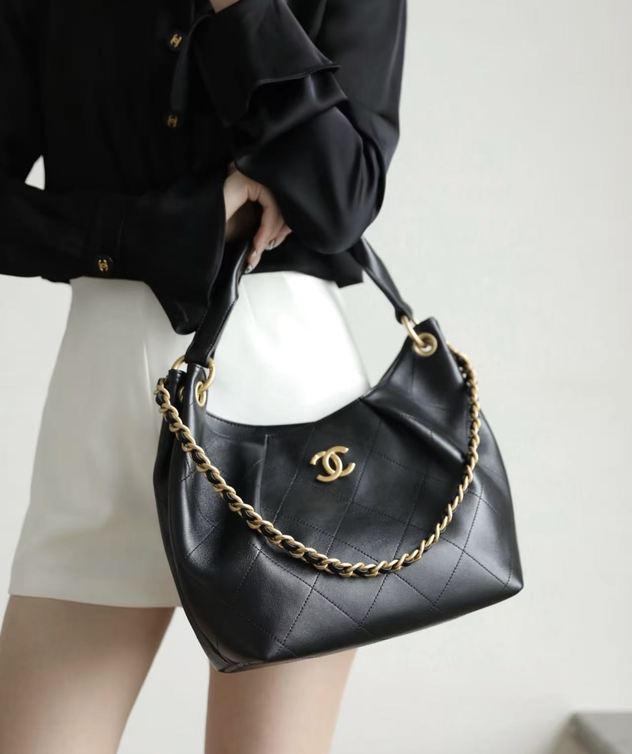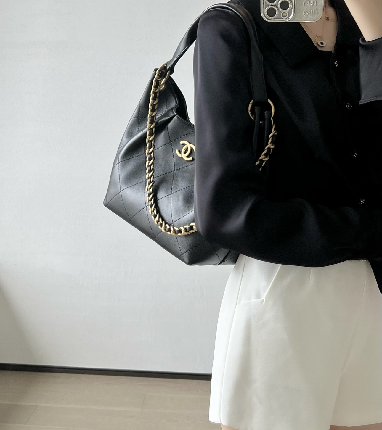 CHANEL香奈儿 26C 金标 双C Logo 单肩手提包 中号 黑色