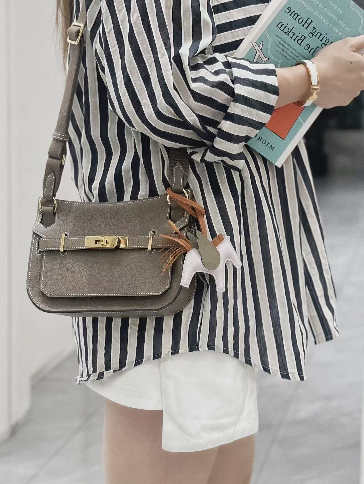 HERMES爱马仕 Jypsiere 金扣吉普赛包 斜挎包 迷你 女款 大象灰