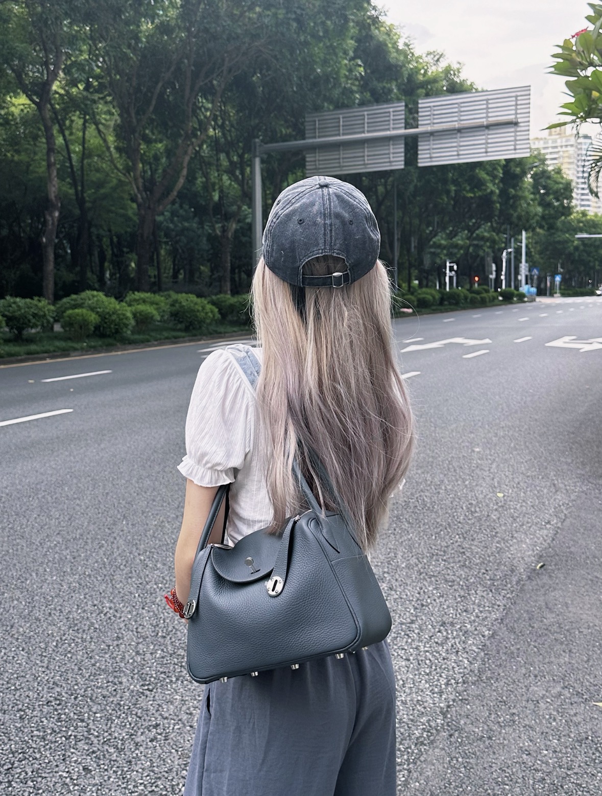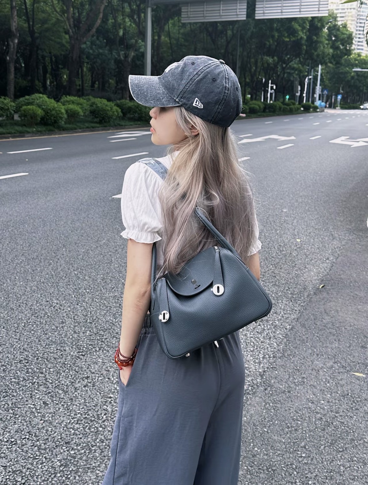HERMES爱马仕 Lindy 26 金扣 手提包 26 女款 3Y Caban 黑呢色/水兵蓝